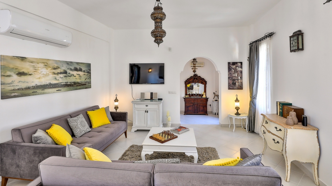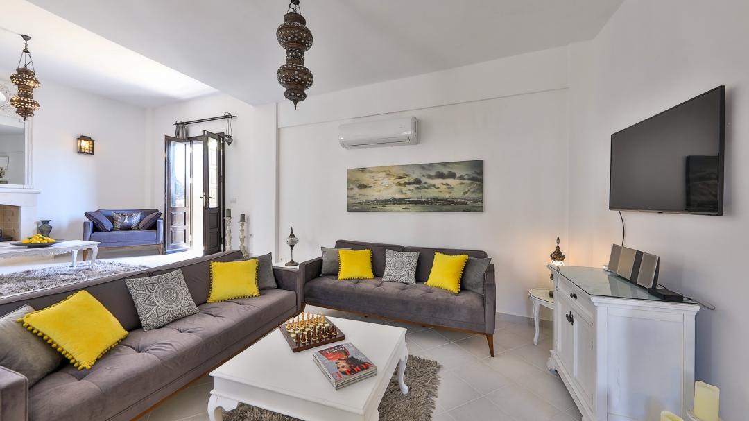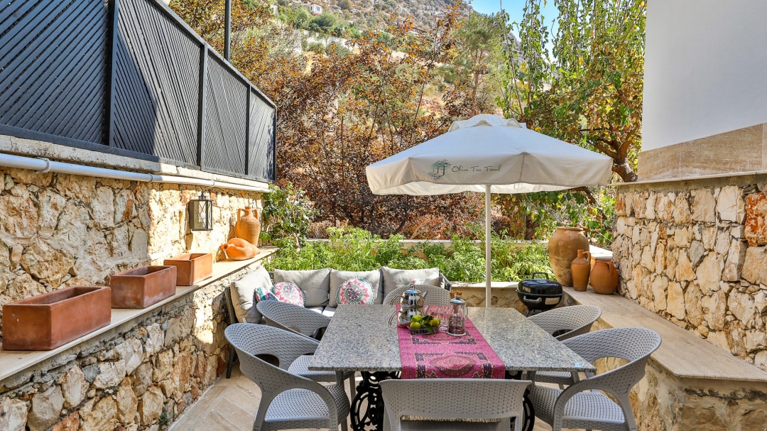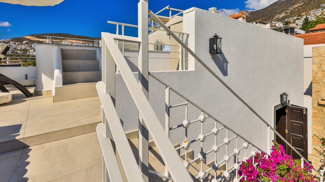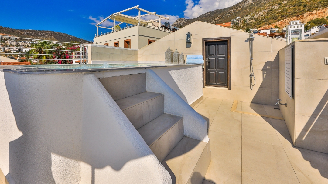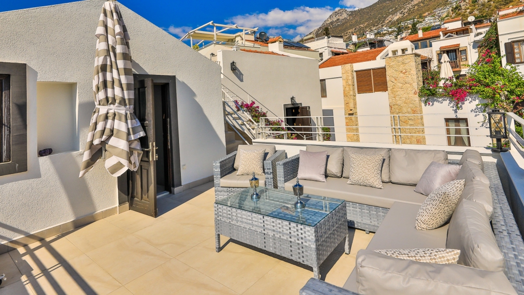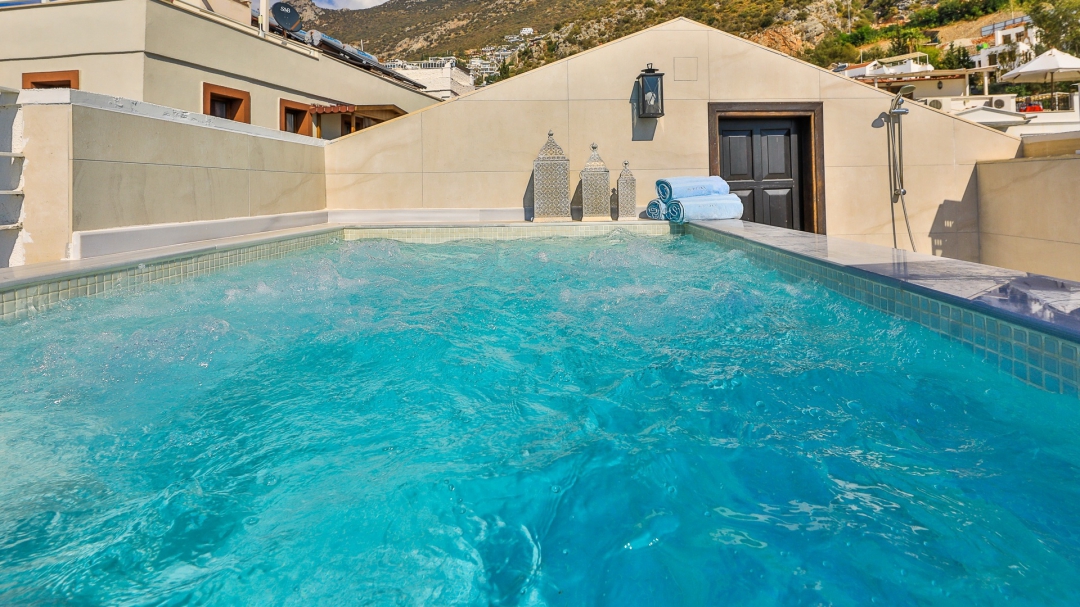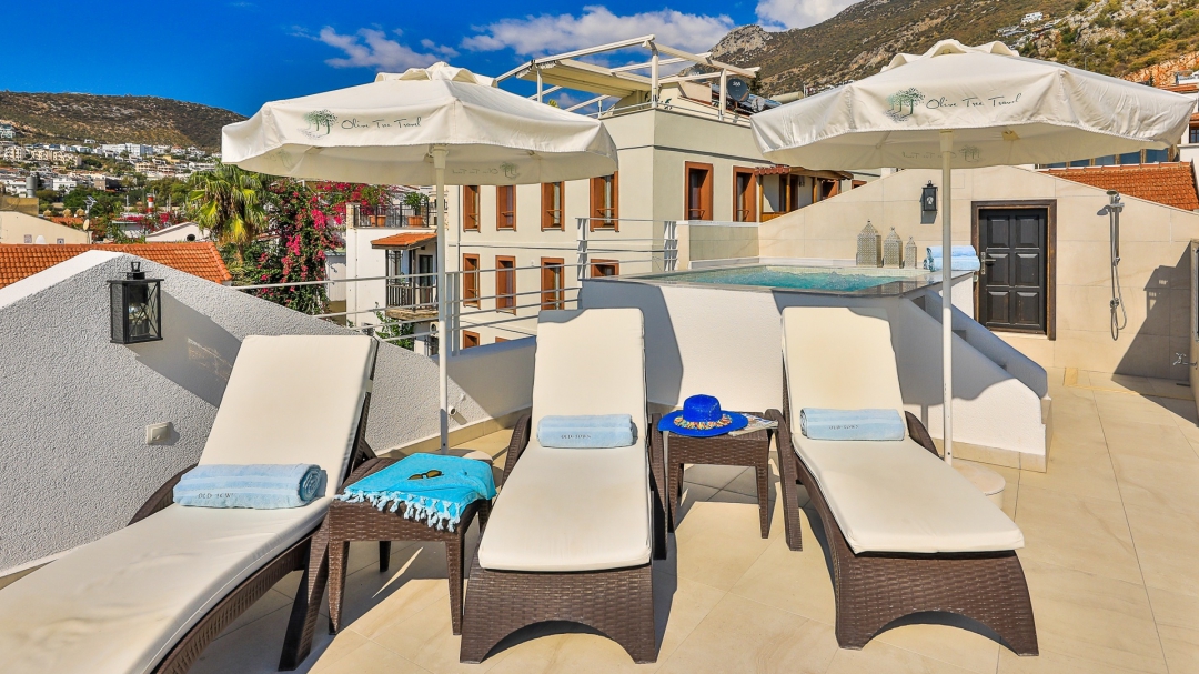 Located in the center of Kalkan, the holiday home is located in the area known as the Old Town, where the first settlement of Kalkan was established. It is in a location where you will not need a car during your holiday. It is possible to reach the sea, restaurants and the market within a two-minute walk. It is a well-maintained house that has been restored as needed without deteriorating its main texture. The house, which has a cooling pool on the roof, has a unique character with its structure and furniture and accessory options. The holiday home, where you will live with pleasure, has the capacity to host a maximum of 6 people. The floor layout of the house is zigzag.