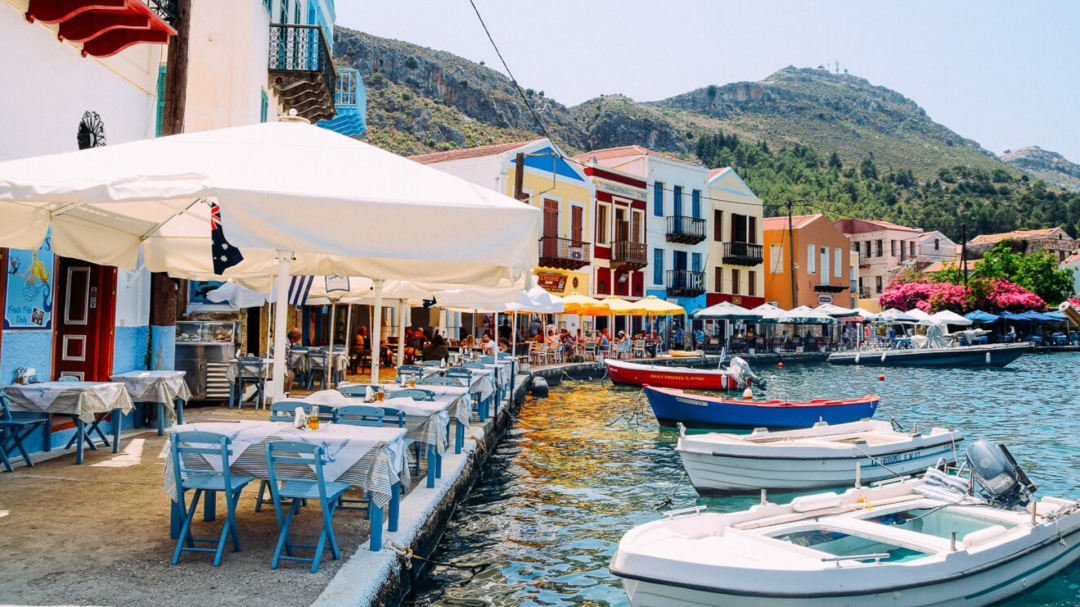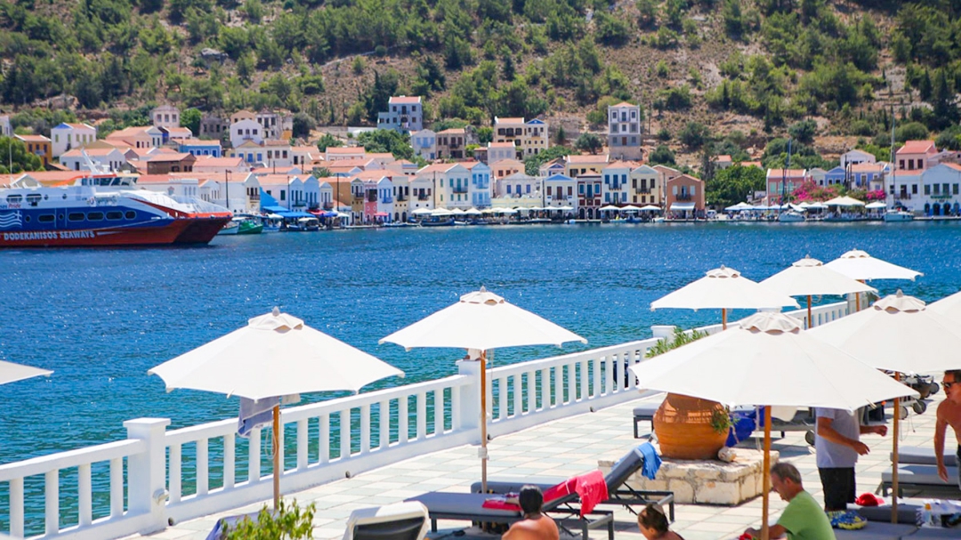 Meis or Kastellorizo is a very pleasant day trip from Kalkan. This small Greek island with a population of several hundred stands opposite the port of Kas and although the port city on the land side is hardly visible during the day. But at night, the lights of the houses, shops and restaurants shimmer like moonlight. Kastellorizo's interesting history was ruled by Rhodes, Egyptian, Venetian Doges and Ottoman Turks. The history of the 20th century becomes much more complicated with the small island passing through the hands of the French, Italians and British. Events leading up to World War II almost completely wiped out the island and its population, and anyone's presence here is testament to the struggle to keep the island communities alive. While most people come here by boat, ferries from Rhodes and more recently directly from Athens and a number of private yachts dock at a port for the night. You wouldn't believe it, but the island is served by Olympic airlines from the Greek mainland with the small airport built on the island's central plateau in 1980. The airline shuttle bus is almost all of the motor vehicle on the island. Generally everything is done on foot. The island has a hotel and a couple of Hostels, but if you're arriving from Turkey overnight, it may not be an option depending on current regulations, which are subject to change. Here you can see classical Greek architecture, shops, narrow streets and restaurants along the harbor.
