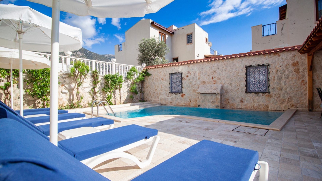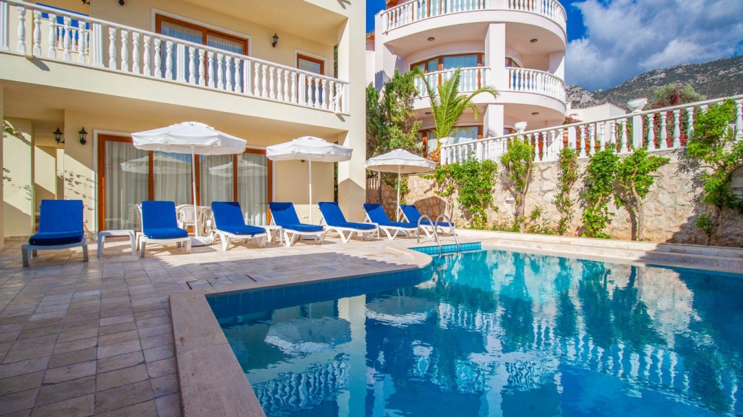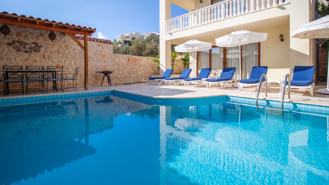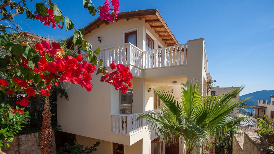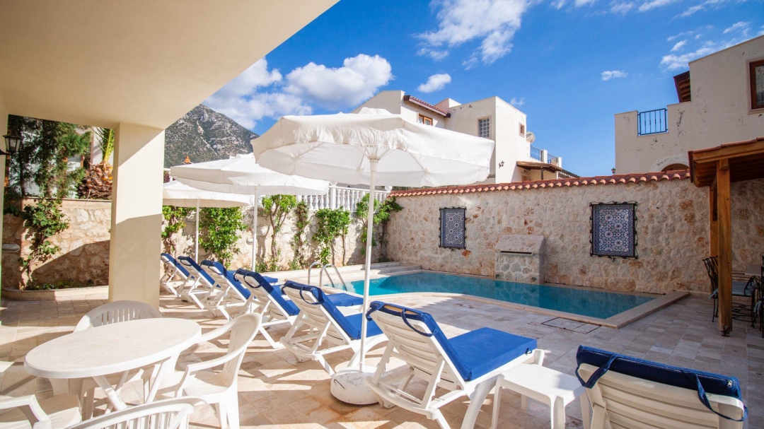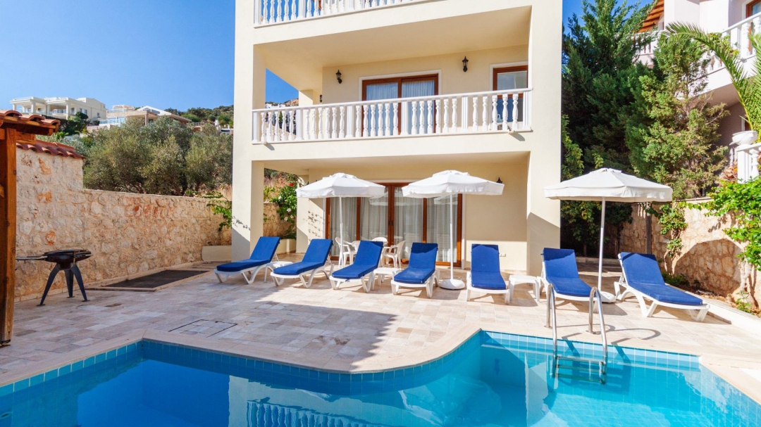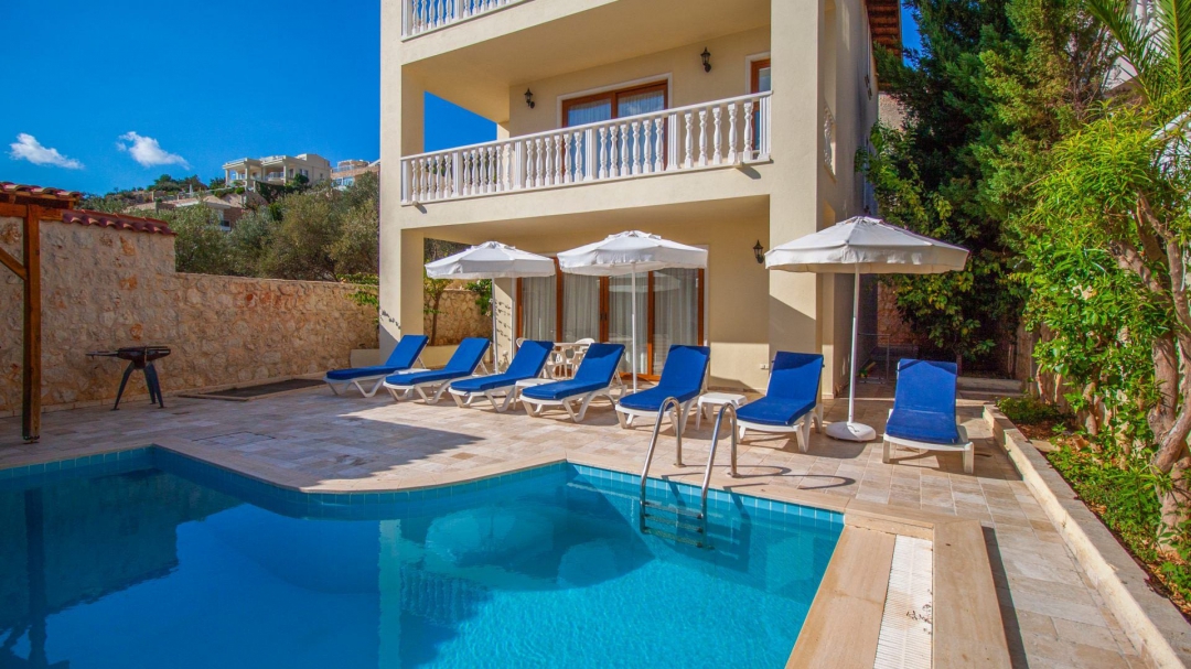 Villa is located above Kalkan village in the Ortaalan district. Close enough to walk downhill to town in about 10 mins. Set over 3 floors, our fully air-conditioned house sleeps 8. Fully furnished to a high standard with linen supplied (except beach/pool towels) it has every modern convenience for the discerning, self-catering holiday maker, whether you are a family, friends or just a couple, our beautiful Villa is the perfect holiday retreat for you!