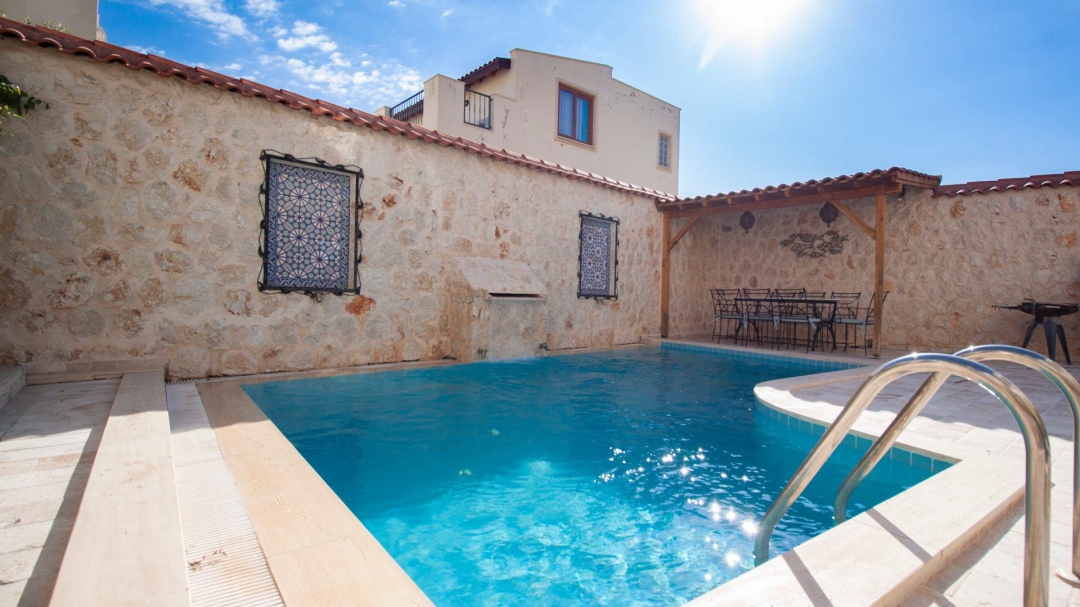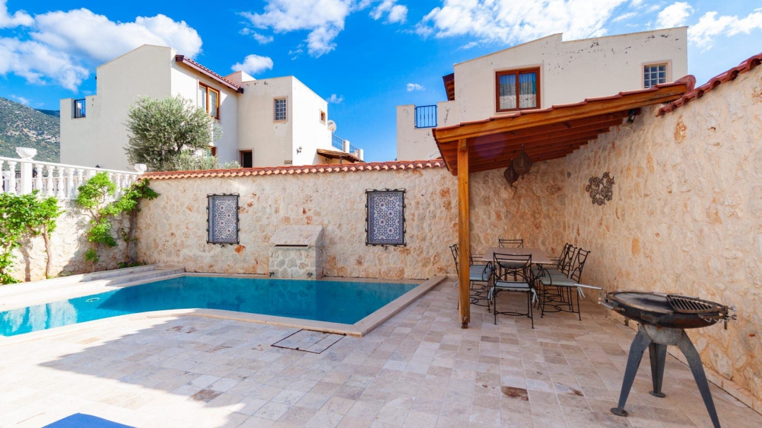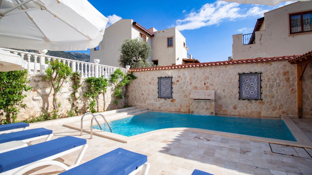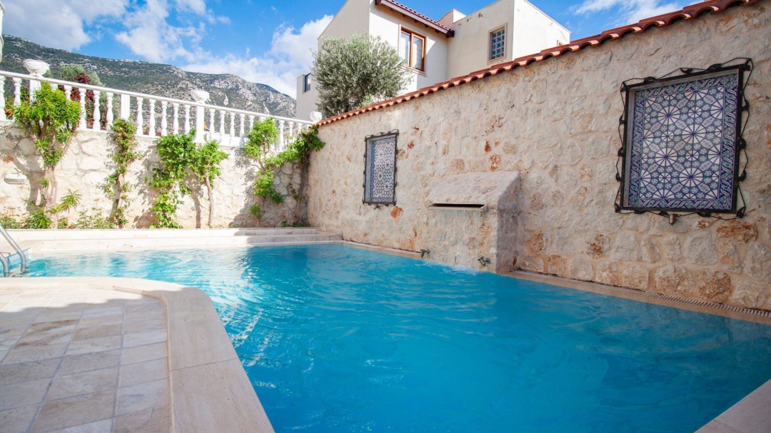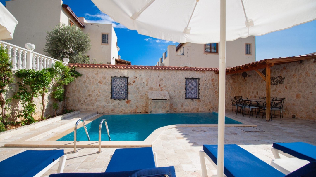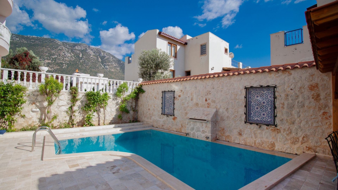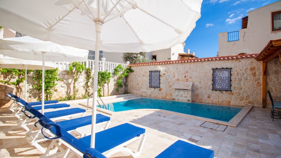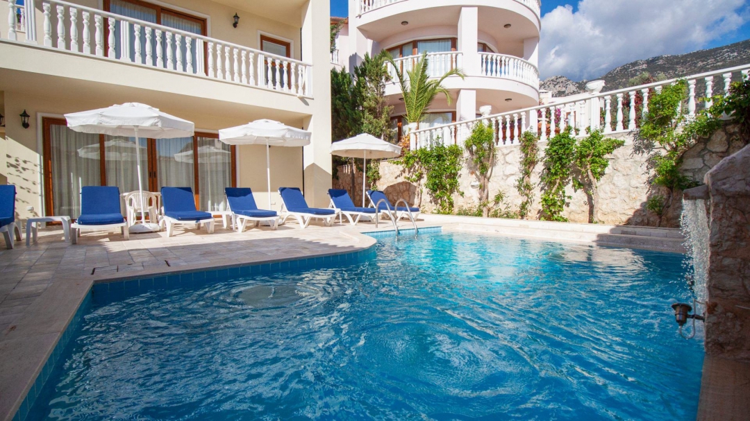 Villa is located above Kalkan village in the Ortaalan district. Close enough to walk downhill to town in about 10 mins. Set over 3 floors, our fully air-conditioned house sleeps 8. Fully furnished to a high standard with linen supplied (except beach/pool towels) it has every modern convenience for the discerning, self-catering holiday maker, whether you are a family, friends or just a couple, our beautiful Villa is the perfect holiday retreat for you!