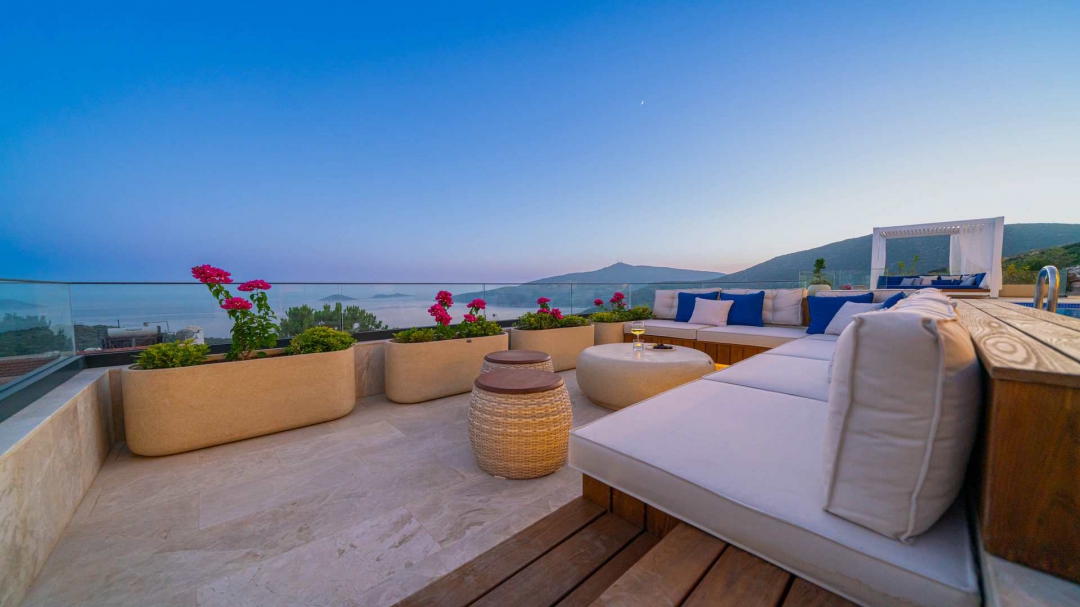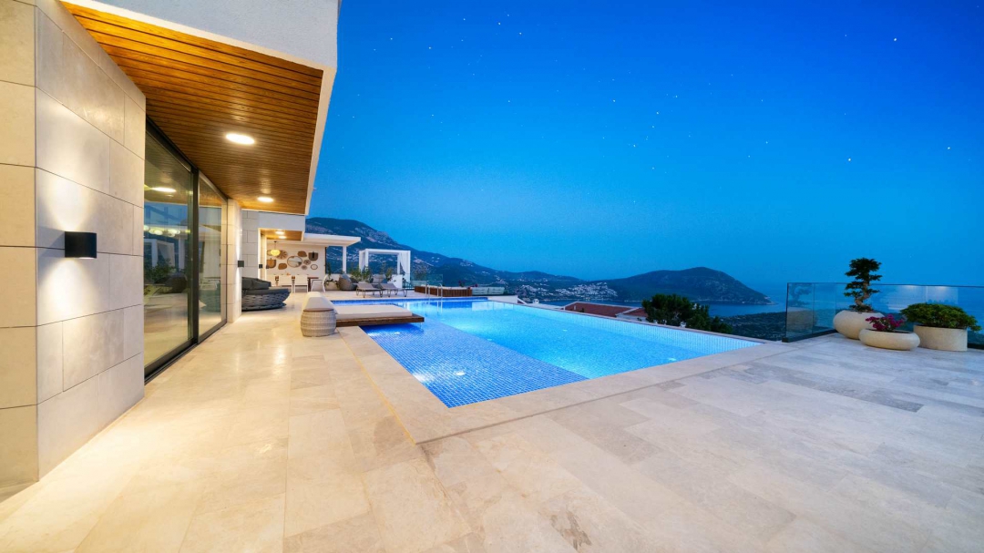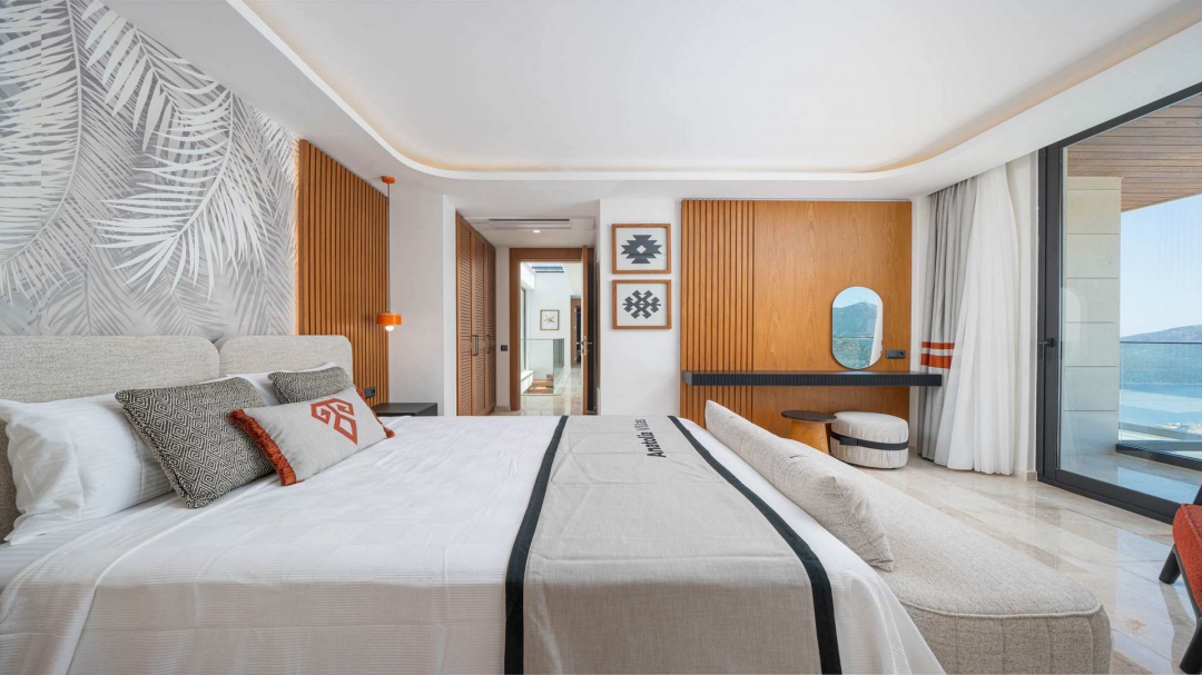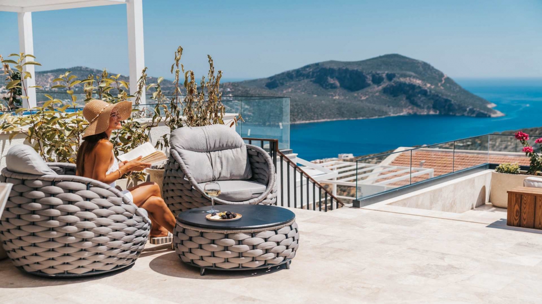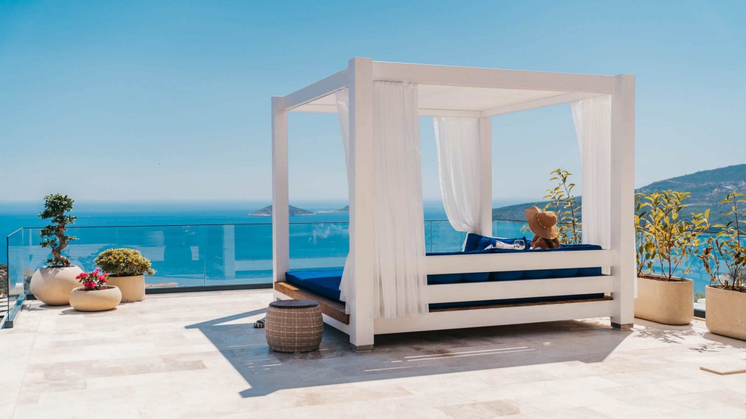 Kalkan is located at the highest point of Kalamar locality, dominating the breathtaking view of the dazzling Mediterranean, Kalkan and Kalamar bays. This unique location will enchant you every morning to start the day with a magnificent sunrise and in the evening to enjoy the setting sun with magnificent colors.