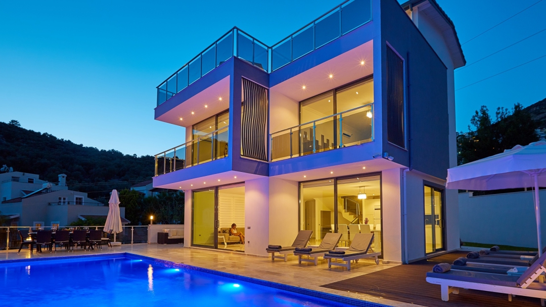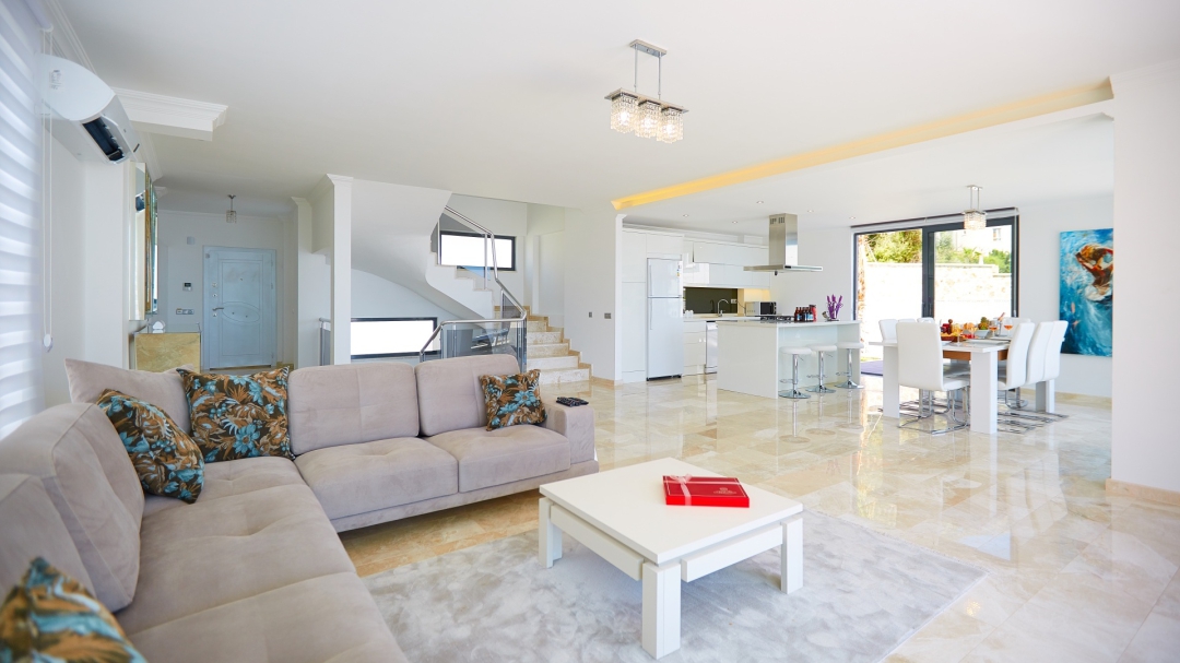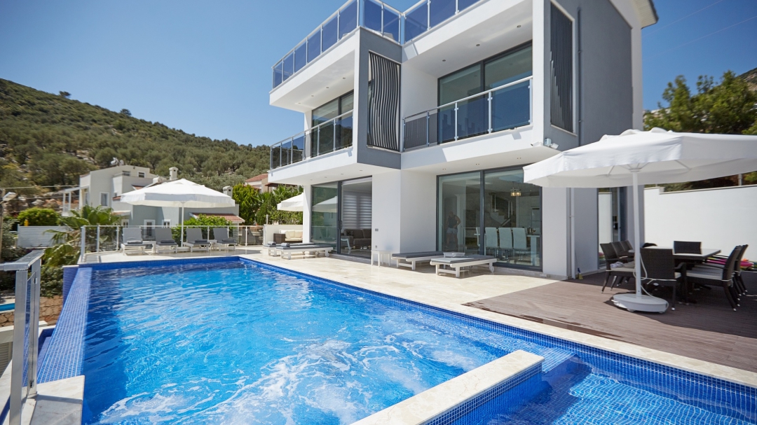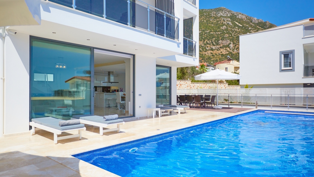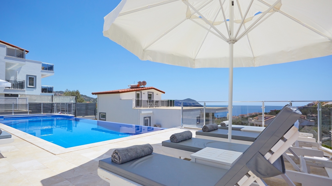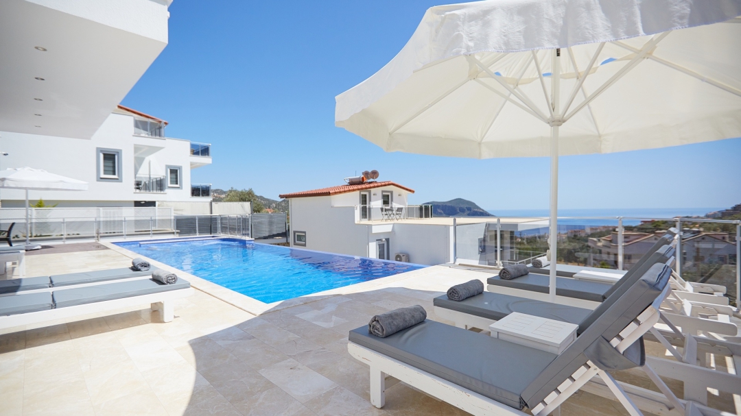 The villa, which is about one kilometer from the center of Kalkan, has a capacity of 10 people. It is among the options with sea view. It is easy to reach Kalkan center from the villa. It is a villa consisting of 4 floors, including the basement.