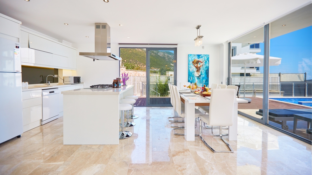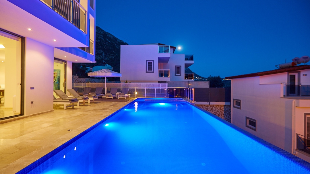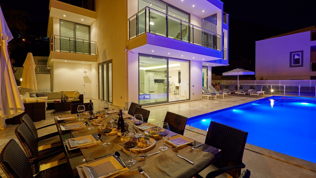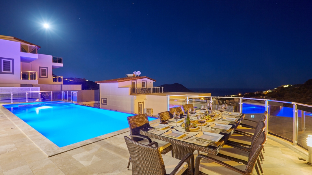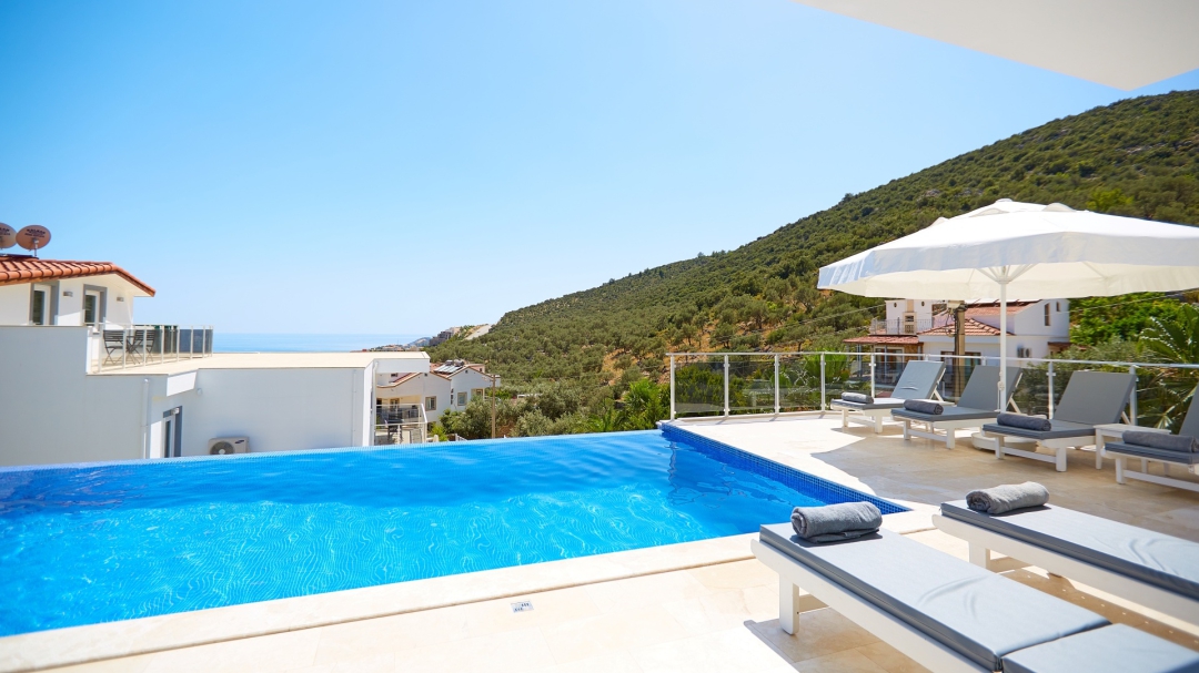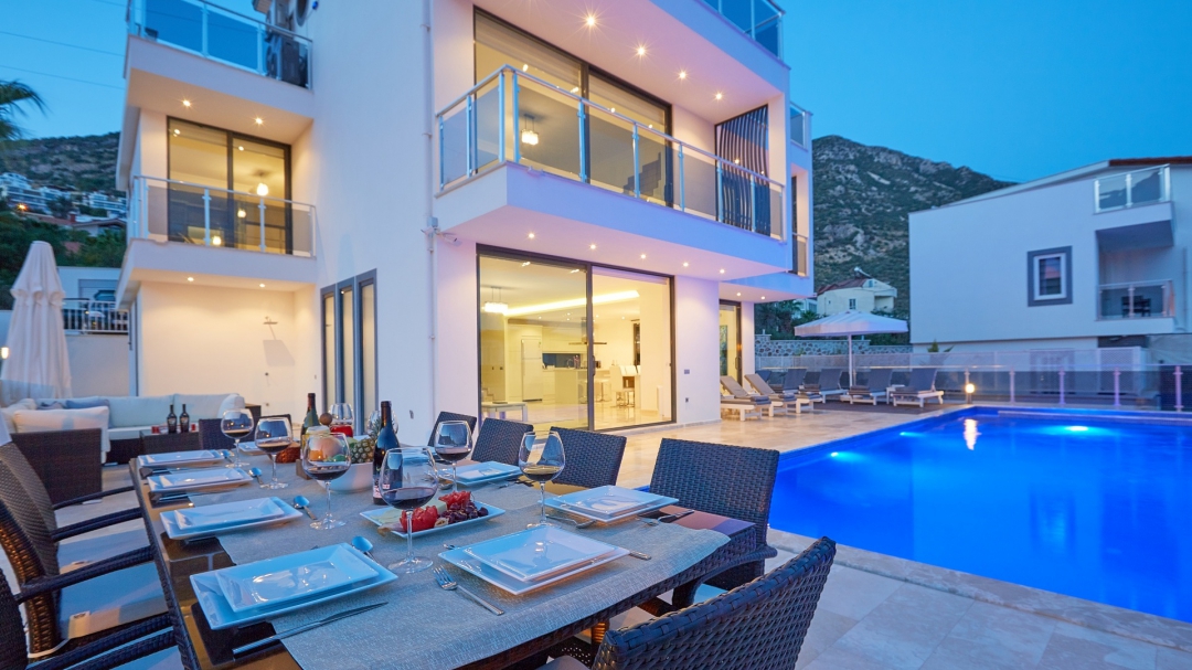 The villa, which is about one kilometer from the center of Kalkan, has a capacity of 10 people. It is among the options with sea view. It is easy to reach Kalkan center from the villa. It is a villa consisting of 4 floors, including the basement.