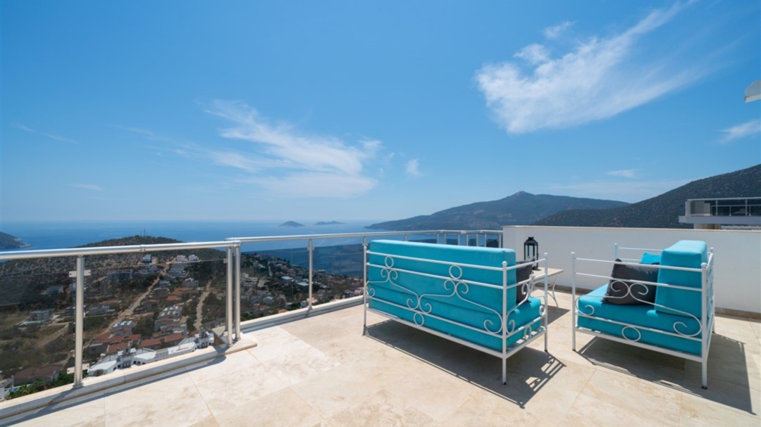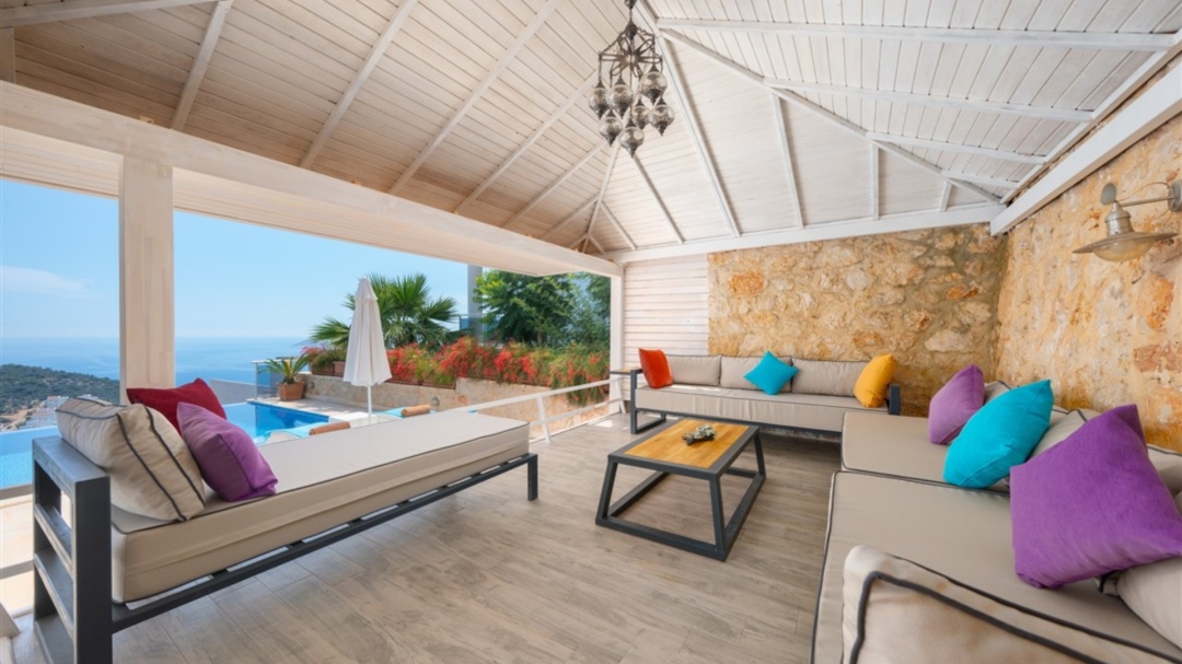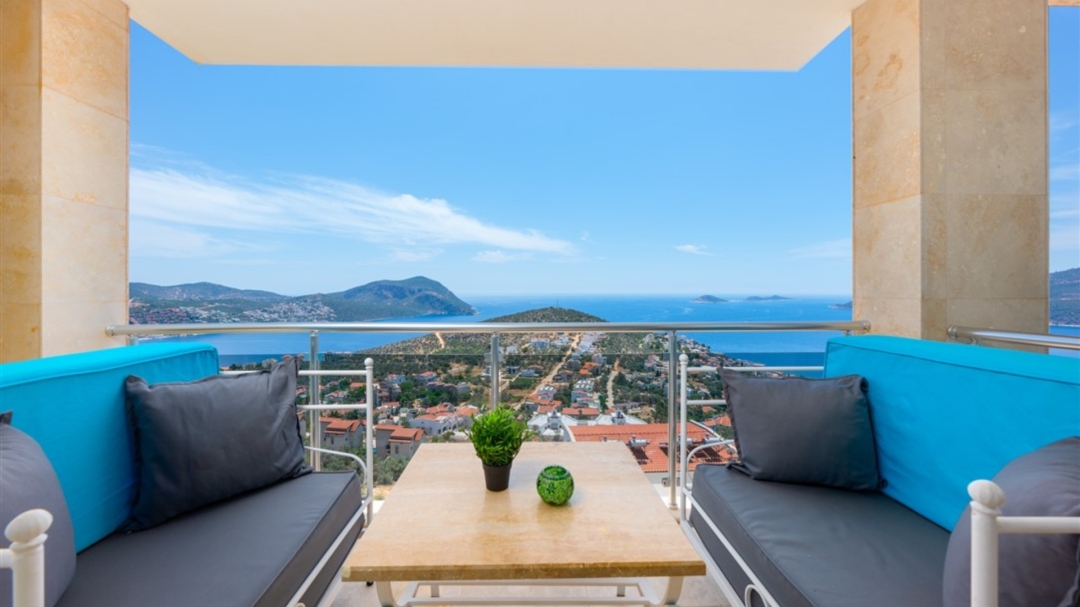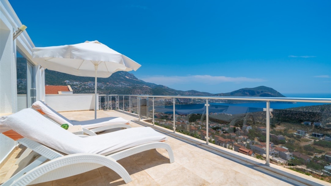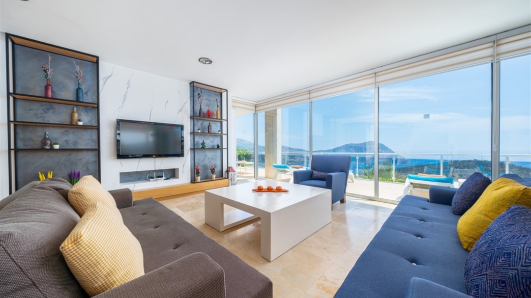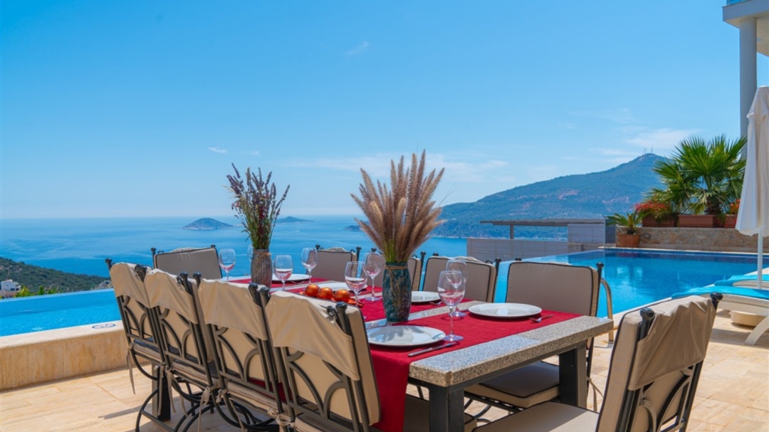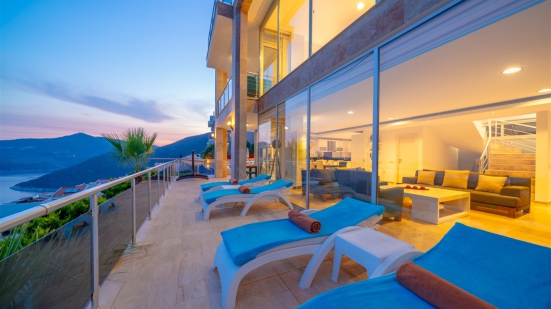 The villa, where comfort and luxury meet, is located in Ortaalan, Kalkan, facing southeast. It offers a magnificent sea view from every room and pool terrace. It is in an area that is easy to reach the center.