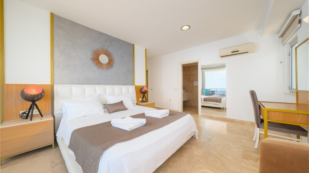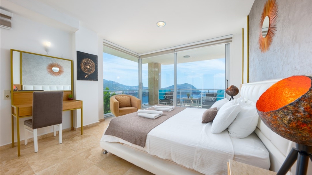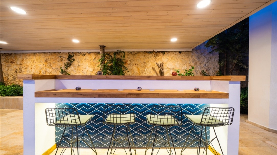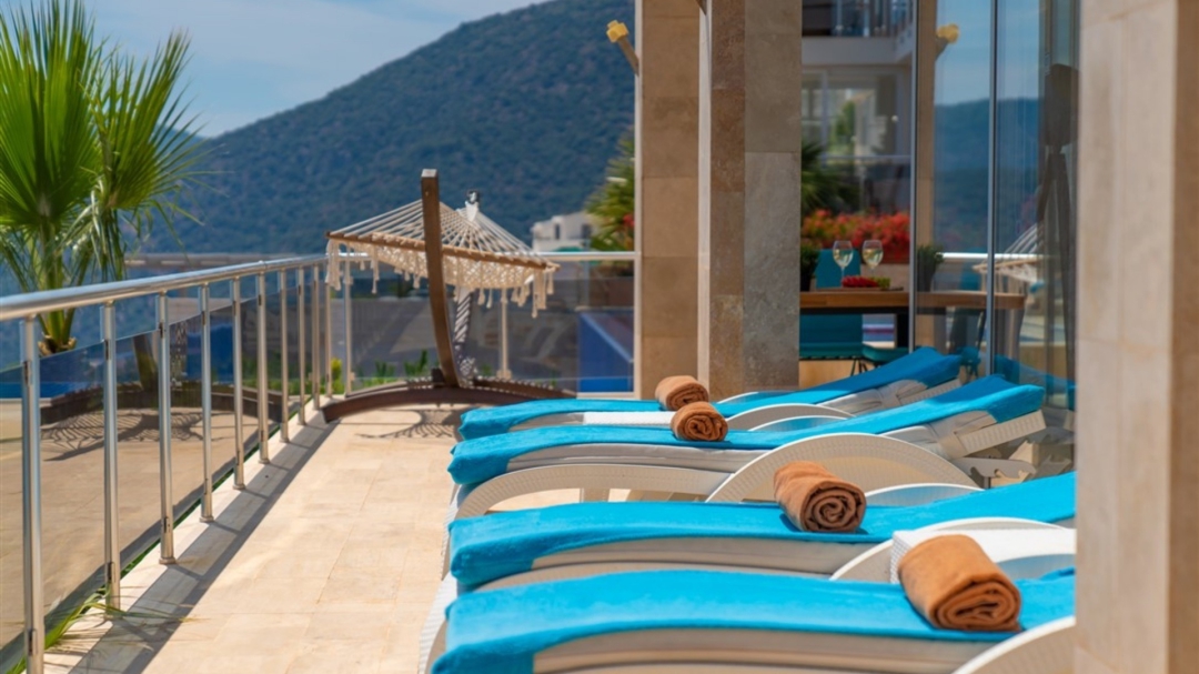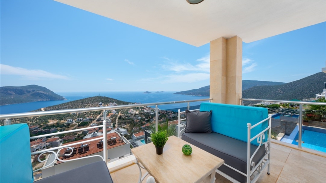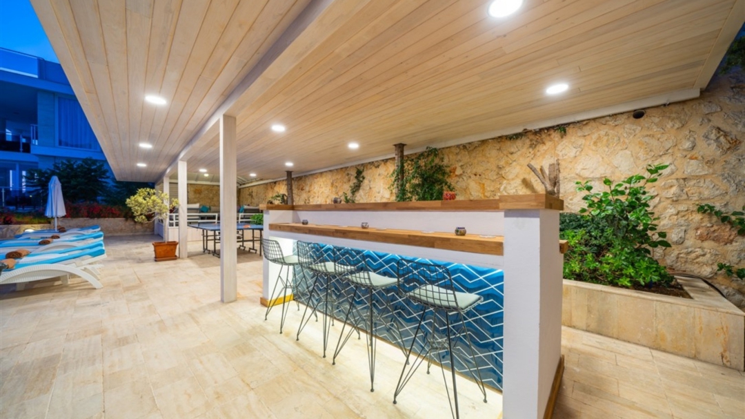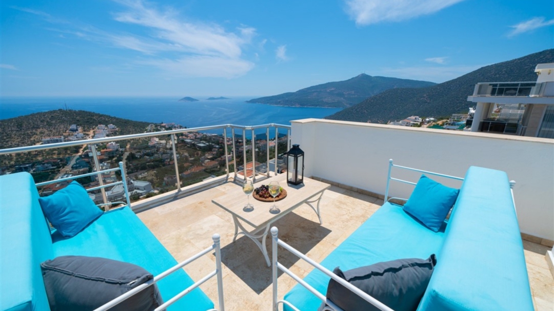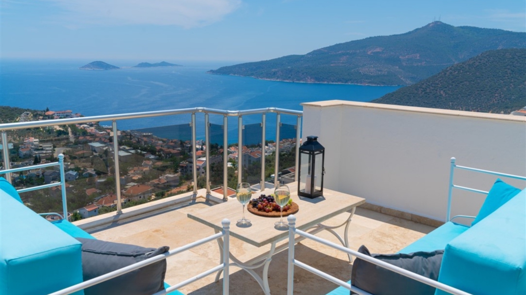 The villa, where comfort and luxury meet, is located in Ortaalan, Kalkan, facing southeast. It offers a magnificent sea view from every room and pool terrace. It is in an area that is easy to reach the center.