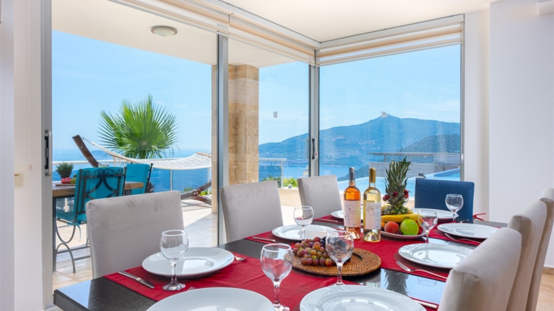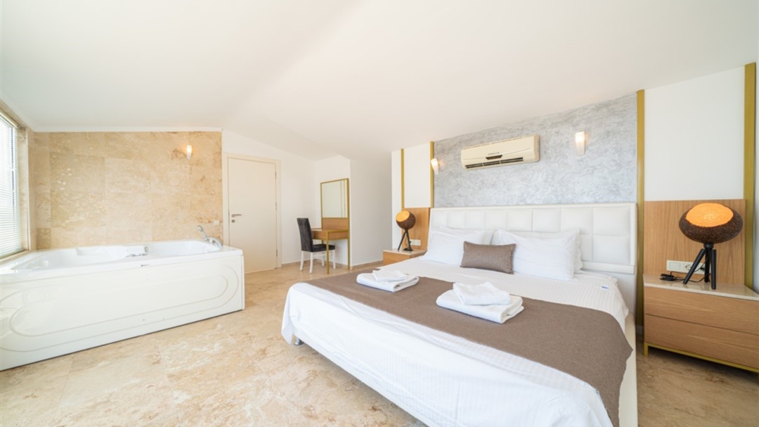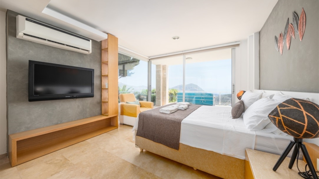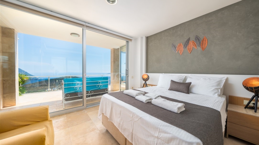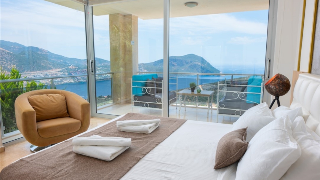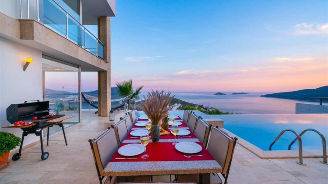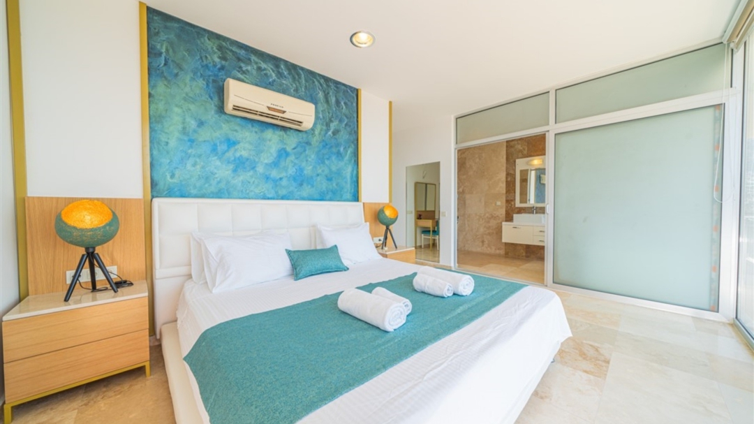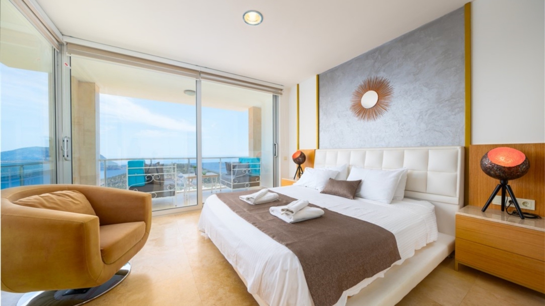 The villa, where comfort and luxury meet, is located in Ortaalan, Kalkan, facing southeast. It offers a magnificent sea view from every room and pool terrace. It is in an area that is easy to reach the center.