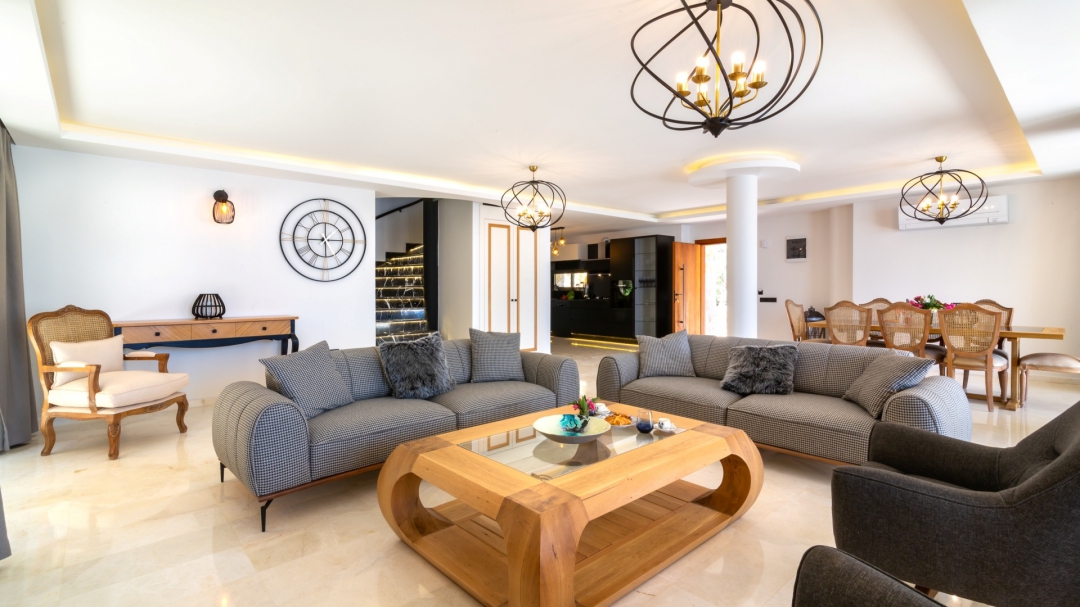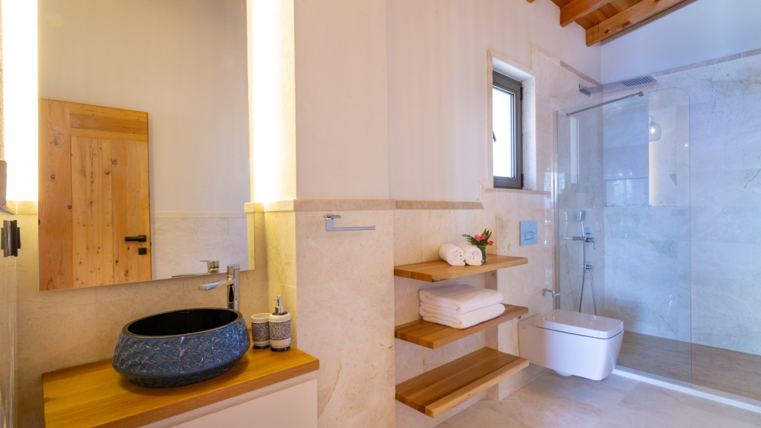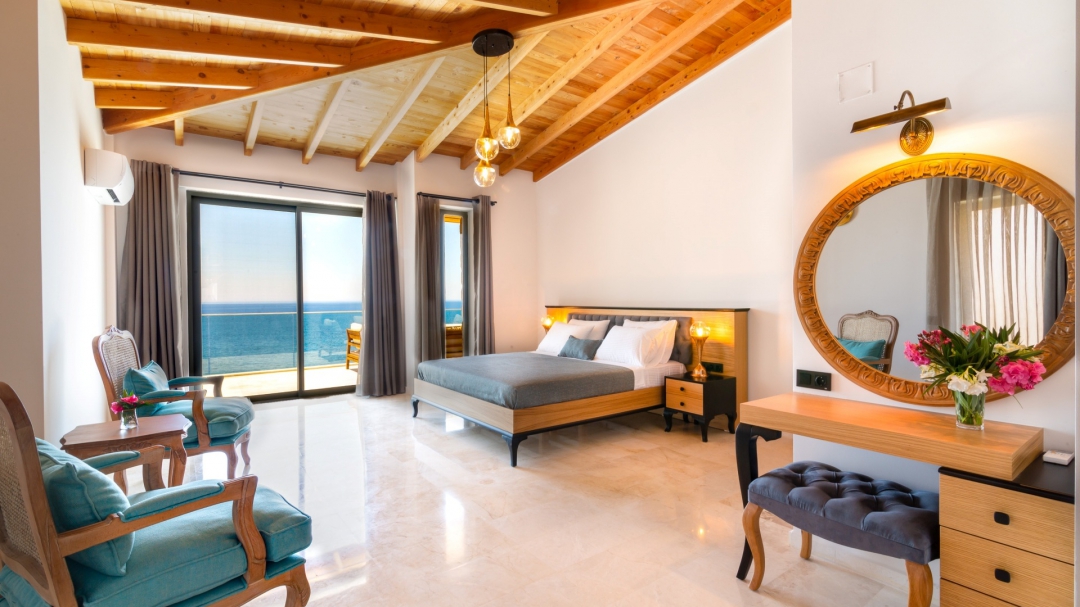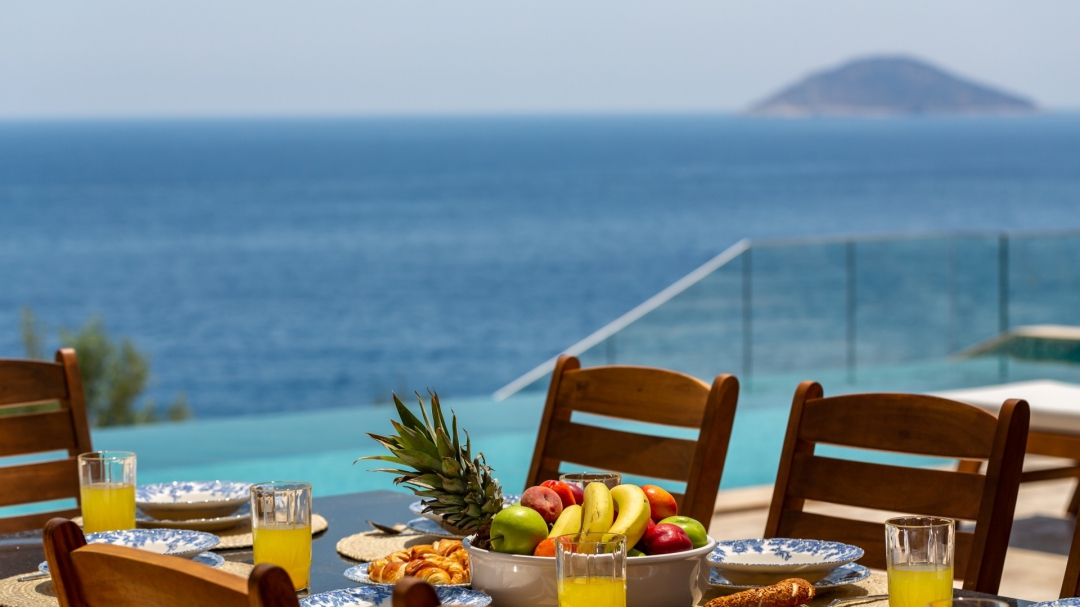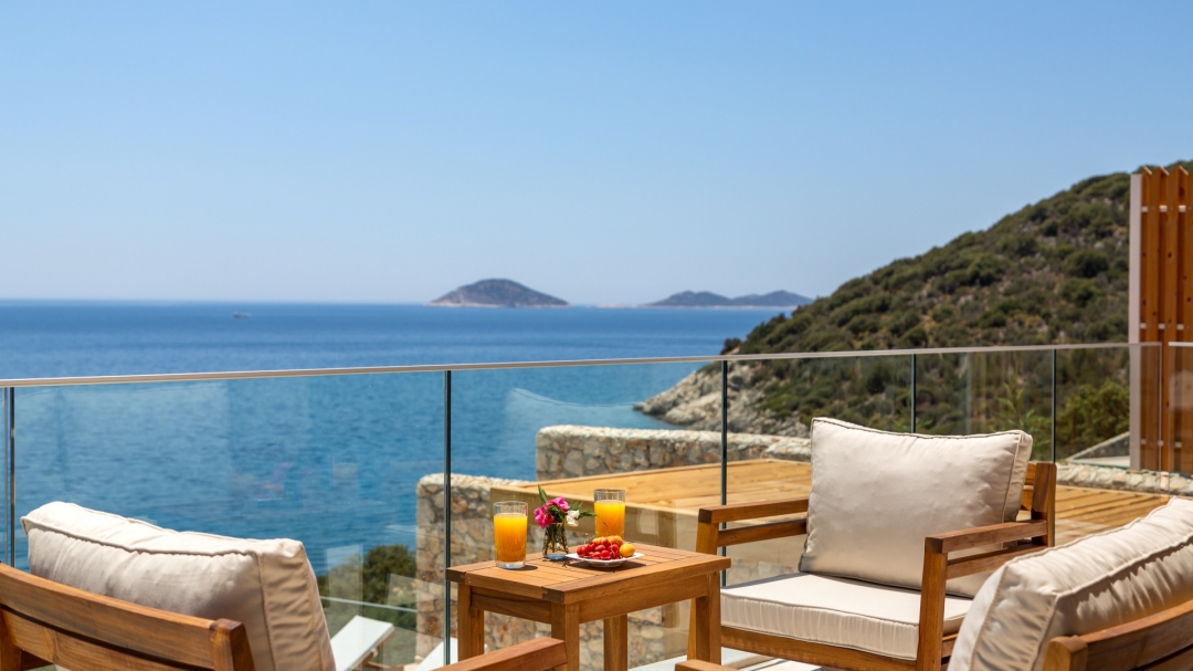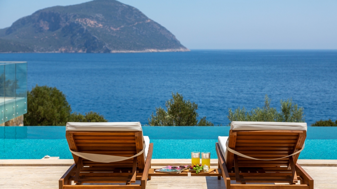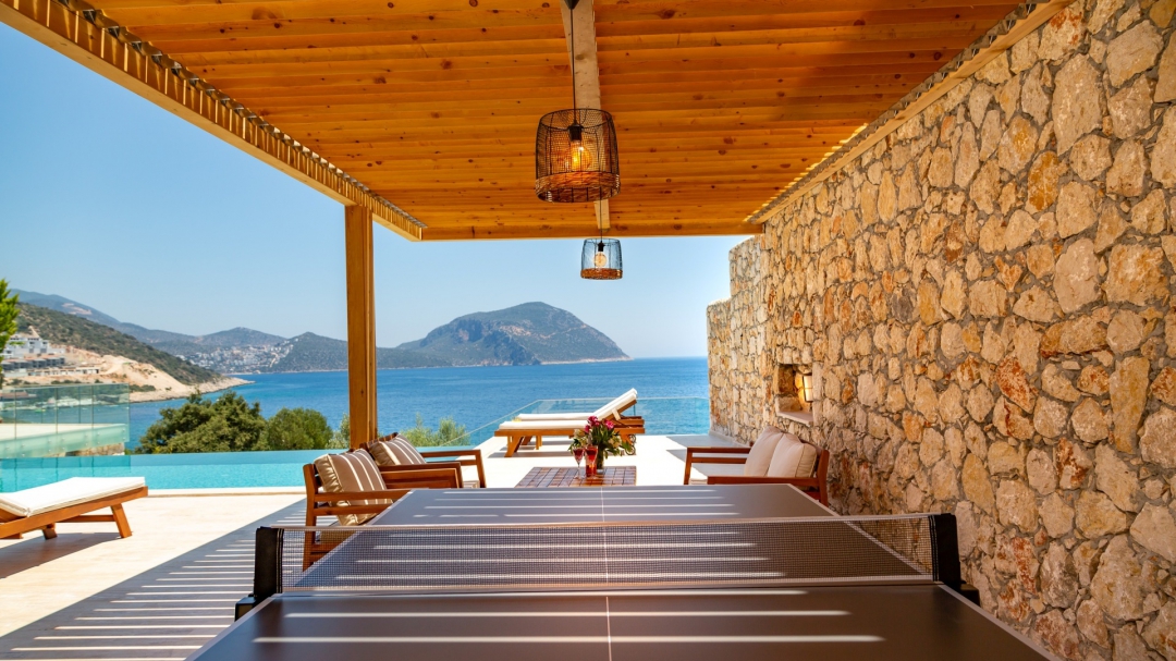 The villa, which has a private platform for access to the sea, is an option with a sea view. Its construction was made with natural materials such as stone and wood. It is located in a quiet area in the Kalamar area of Kalkan. It is one of the three villas in the area where it is located. If it is rented together with the villa with a capacity of 12 people located next to it, a capacity of 20 people can be provided. It offers its guests a unique experience in terms of access to the sea and close sea view. Like the materials used in the structure of the building, the colors used in its decor are natural colors that will make you feel comfortable. The villa has a clear sea view to match the sea view phrase.