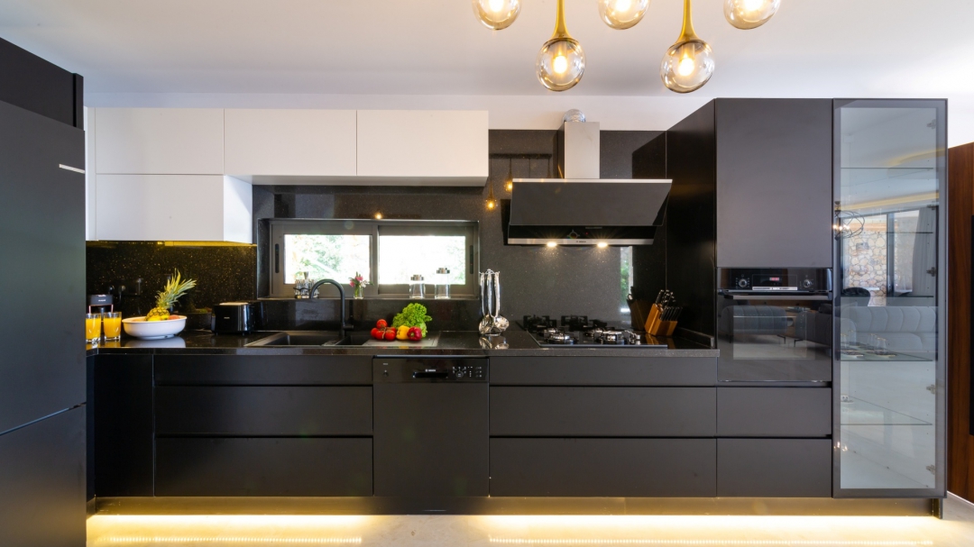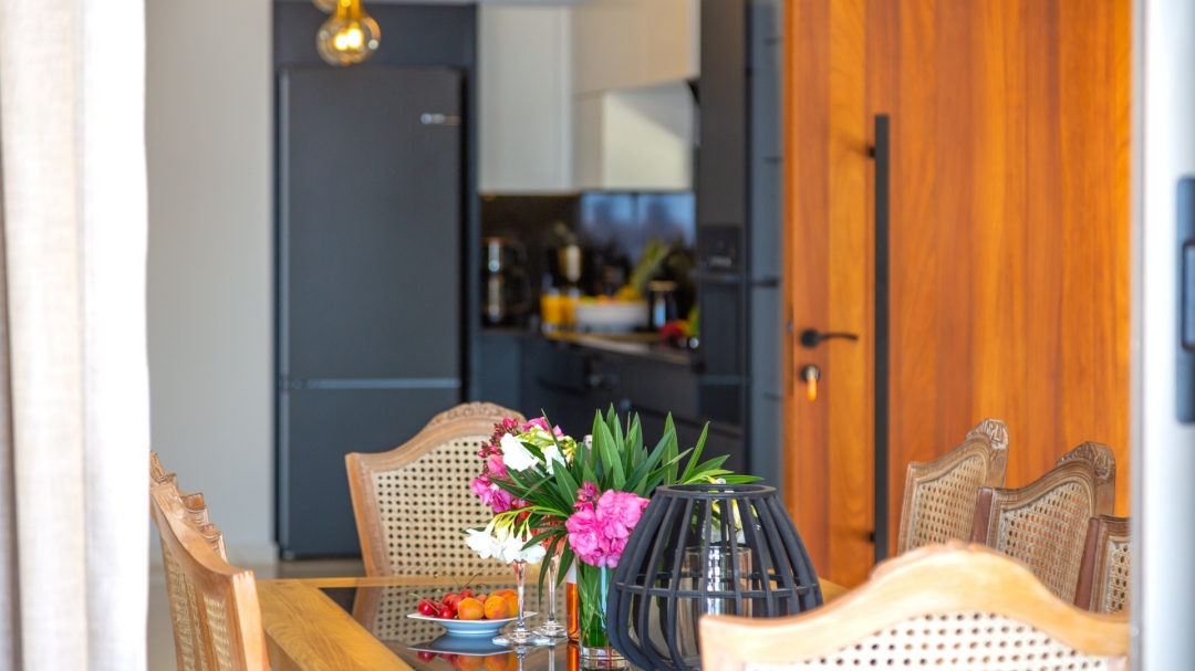 The living room, the open kitchen and the first room with a double bed are located on the ground floor. The open kitchen is stylish and the living room is wide enough to make you feel comfortable. The en suite room on the ground floor has equipment such as make-up table, wardrobe and nightstand.