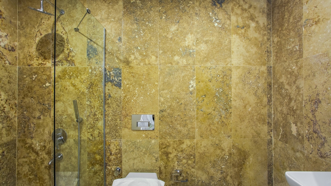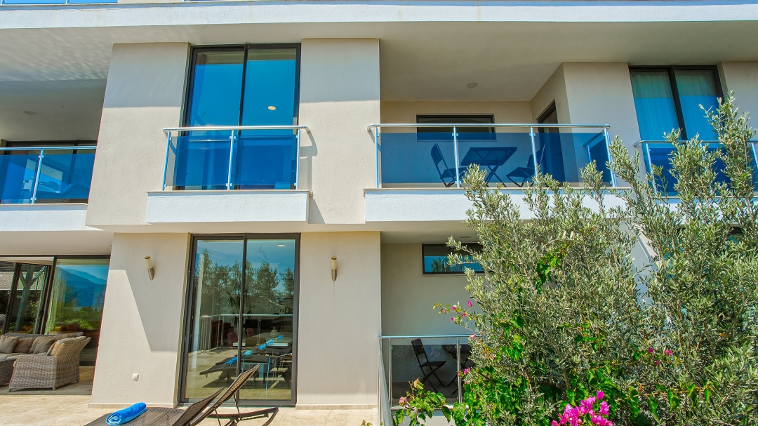 There are three bedrooms on the first floor. All three rooms have double beds. Wardrobe, make-up table, nightstands are the standard equipment used in these rooms. On this floor, the room on the east of the building has a private balcony. A larger balcony is available for common use for the other two rooms. One of the rooms, which is connected to the common balcony, has a large armchair unlike the others.