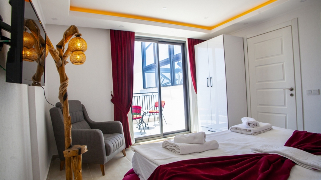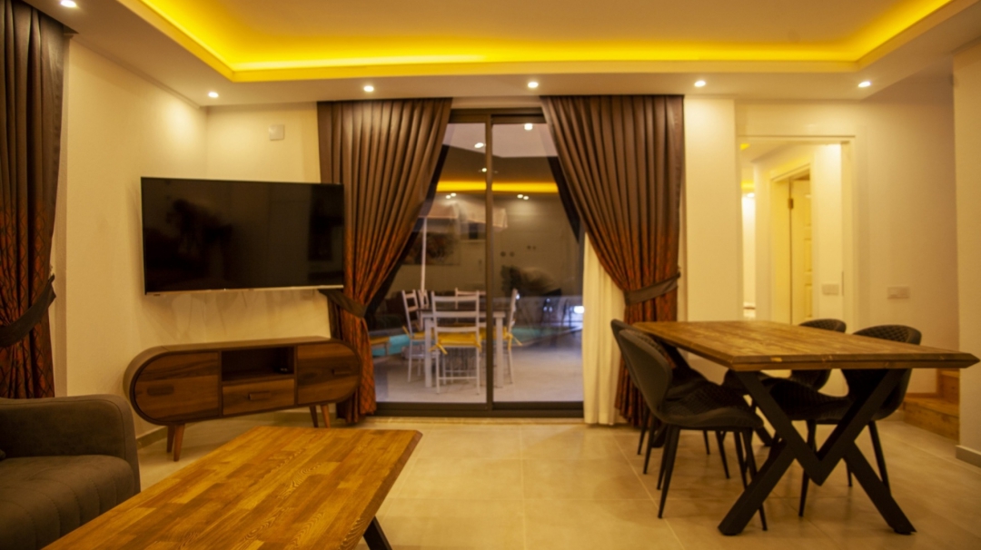 Located in Ortaalan, close to the center, the villa has two bedrooms. From this option, it is easy to reach the center on foot or by car. There are three more villas with the same capacity and similar plan in the same area. When 4 Villas are rented together, it creates a capacity of 16 people. Buildings with codes ABI6959, ABI7328, ABI7332 are the other villas located next to this villa.