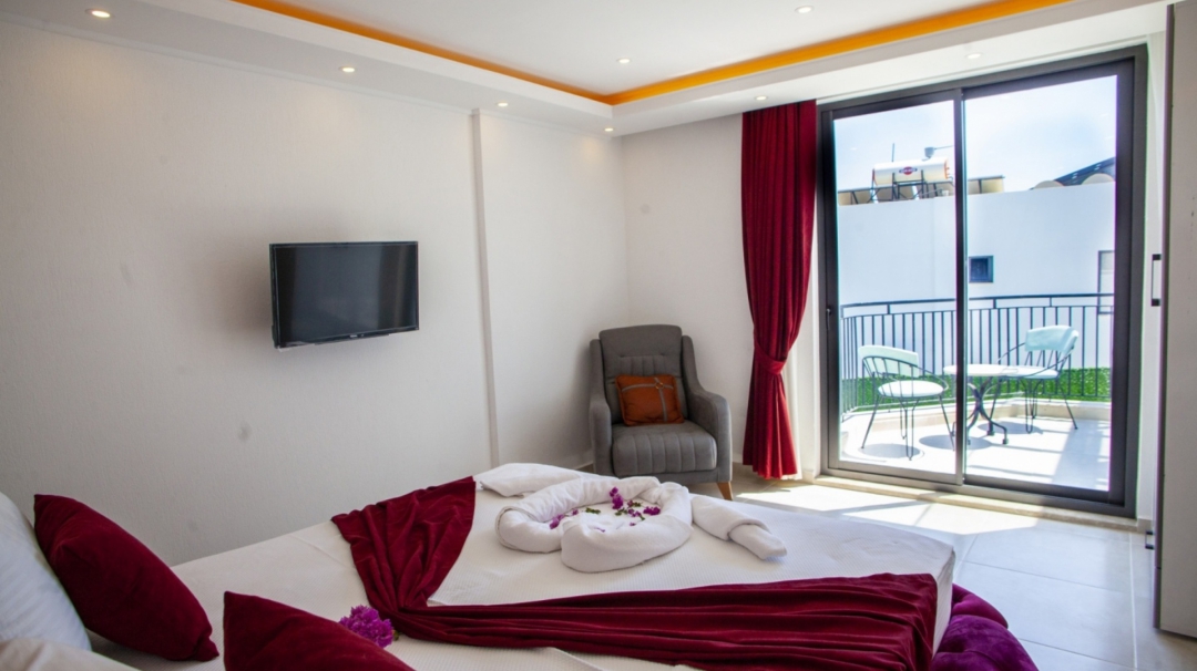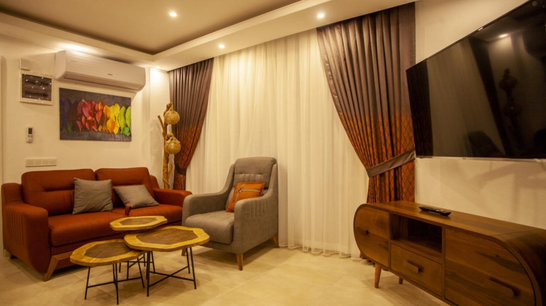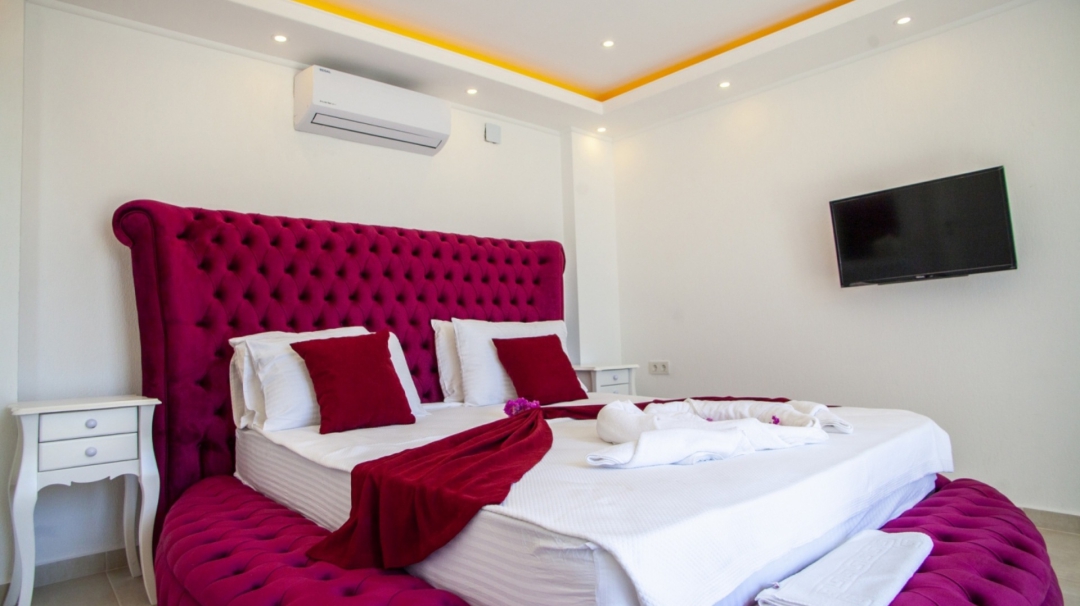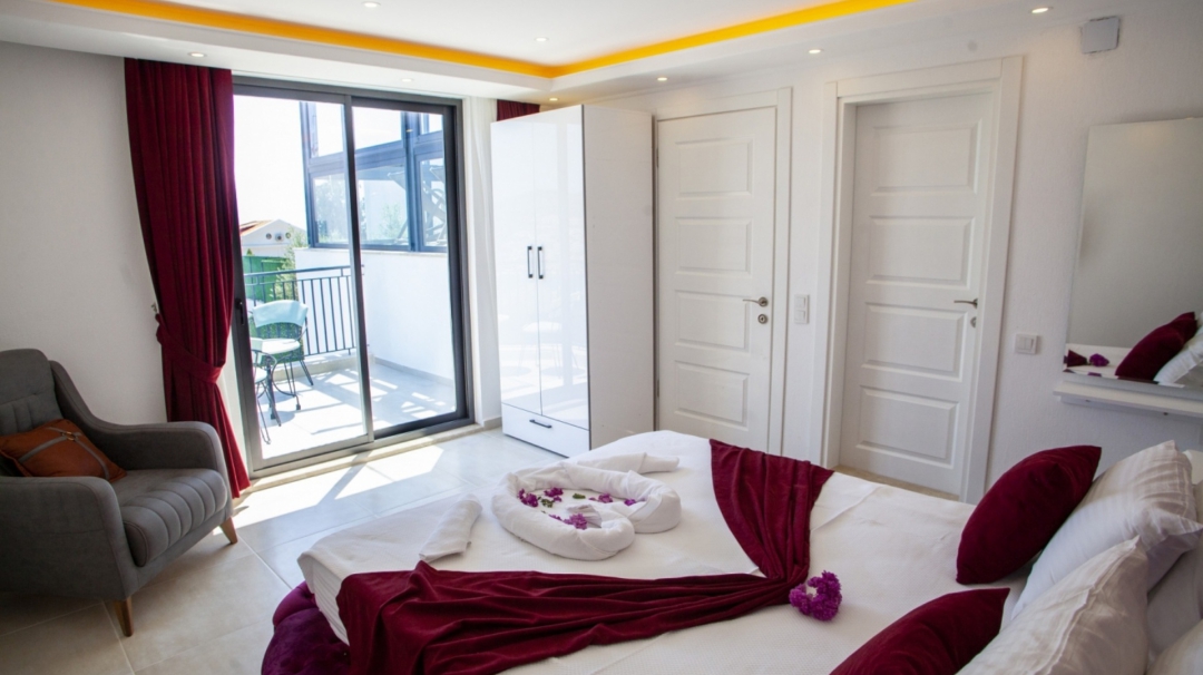Located in Ortaalan, close to the center, the villa has two bedrooms. From this option, it is easy to reach the center on foot or by car. There are three more villas with the same capacity and similar plan in the same area. When 4 Villas are rented together, it creates a capacity of 16 people. Buildings with codes ABI6959, ABI7032, ABI7332 are the other villas located next to this villa.