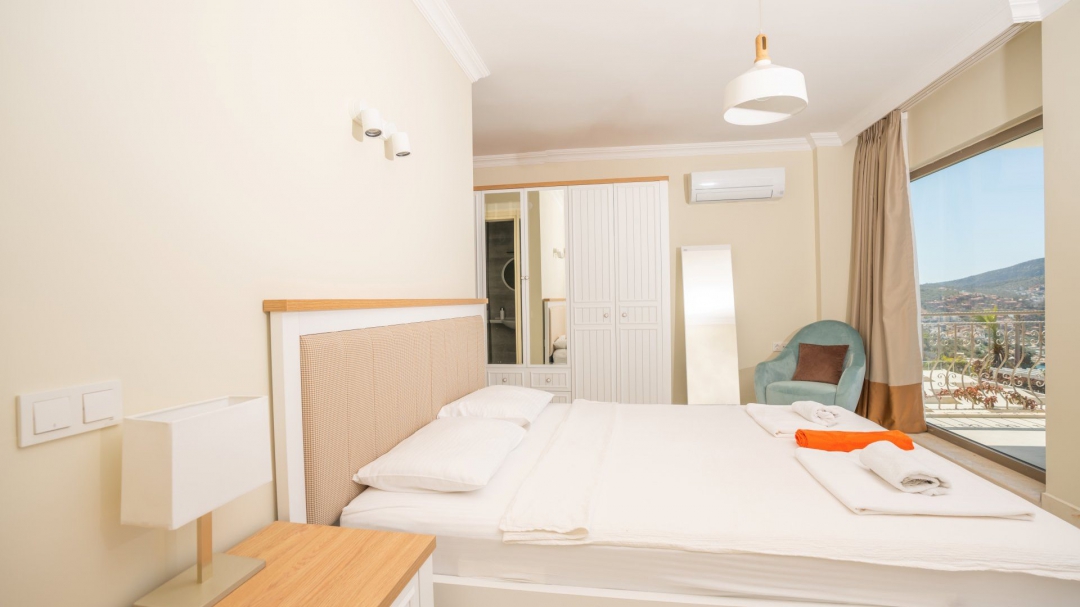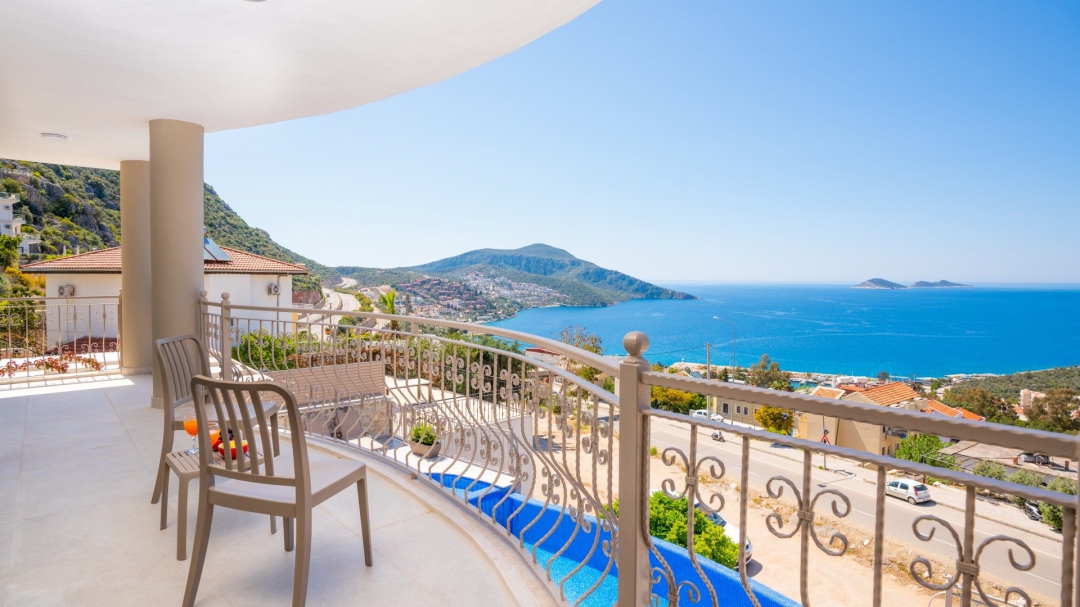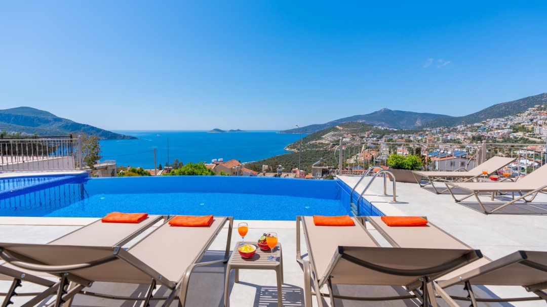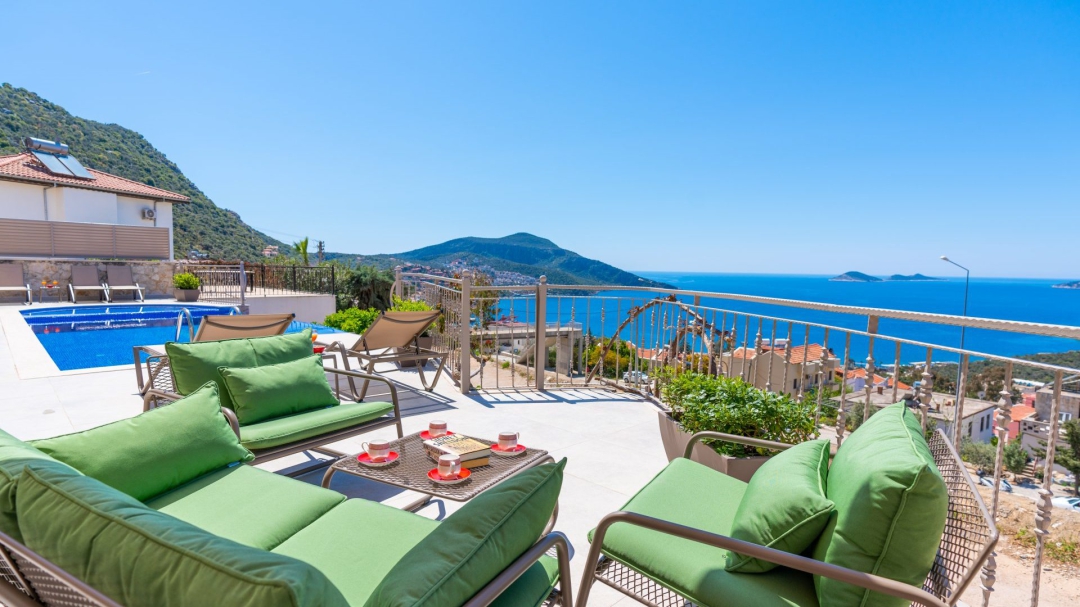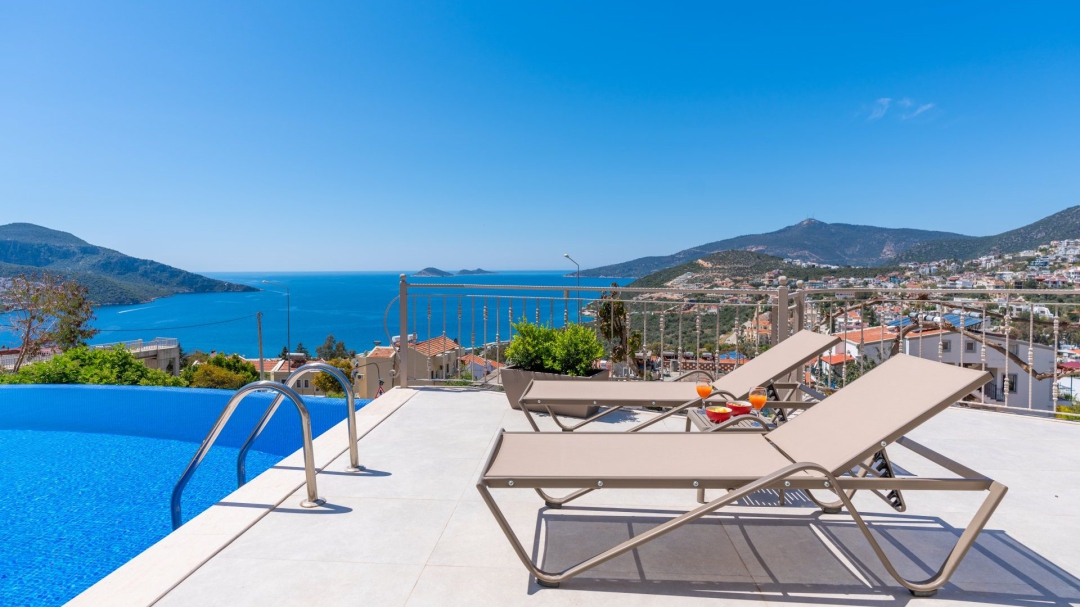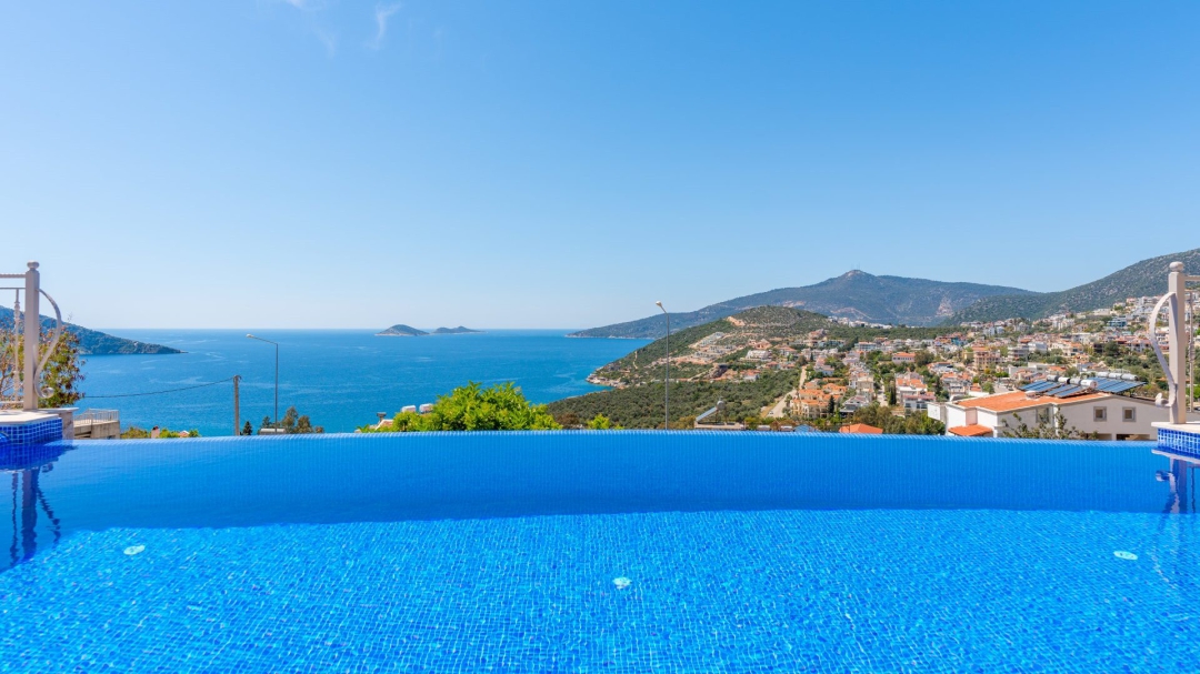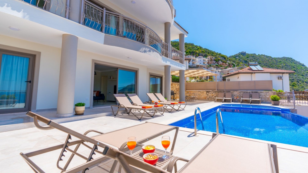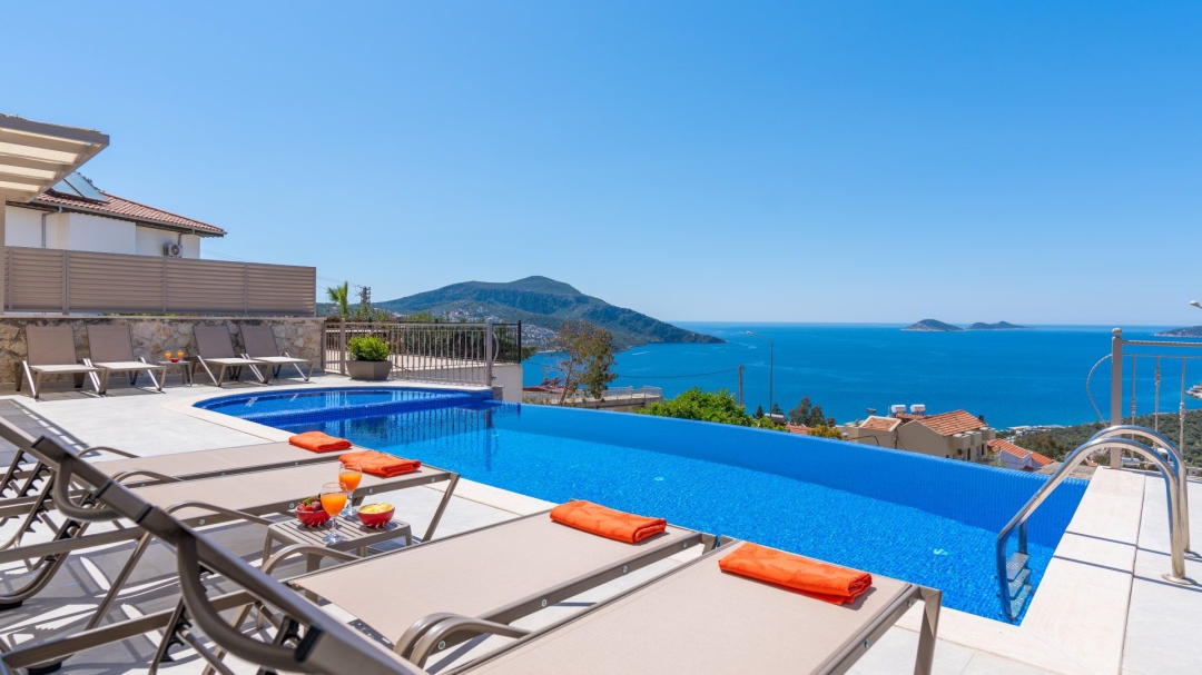 This villa, where the blue of the sea will adorn your eyes during your holiday, is located in Kızıltaş, close to the center of Kalkan. It is in a position to receive sunlight throughout the day. It has a large pool terrace and 4 bedrooms. There is a sea view from every part of the building.