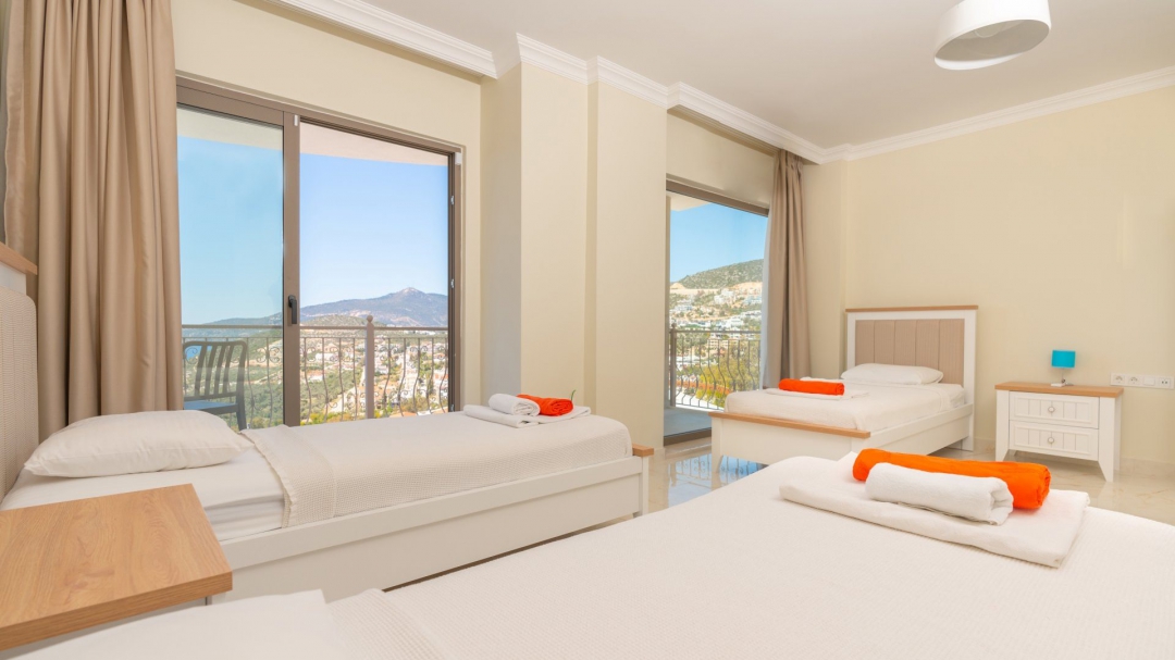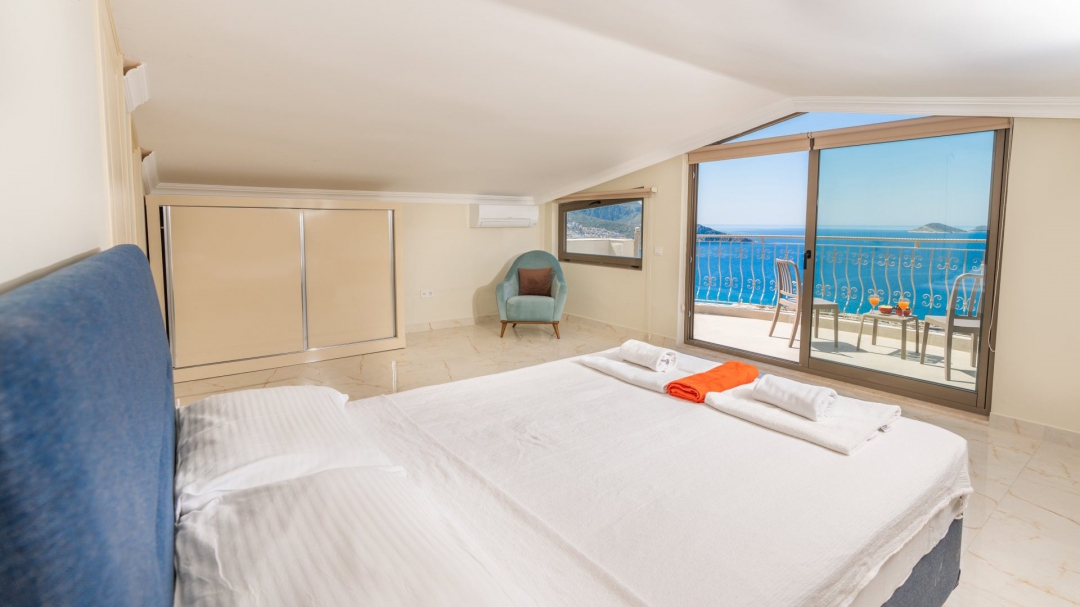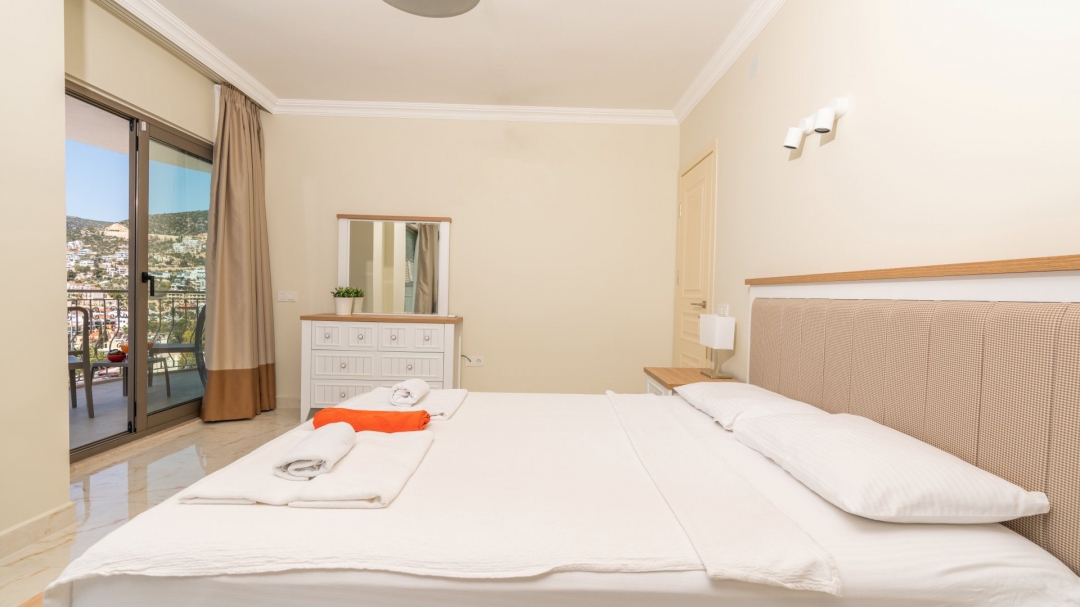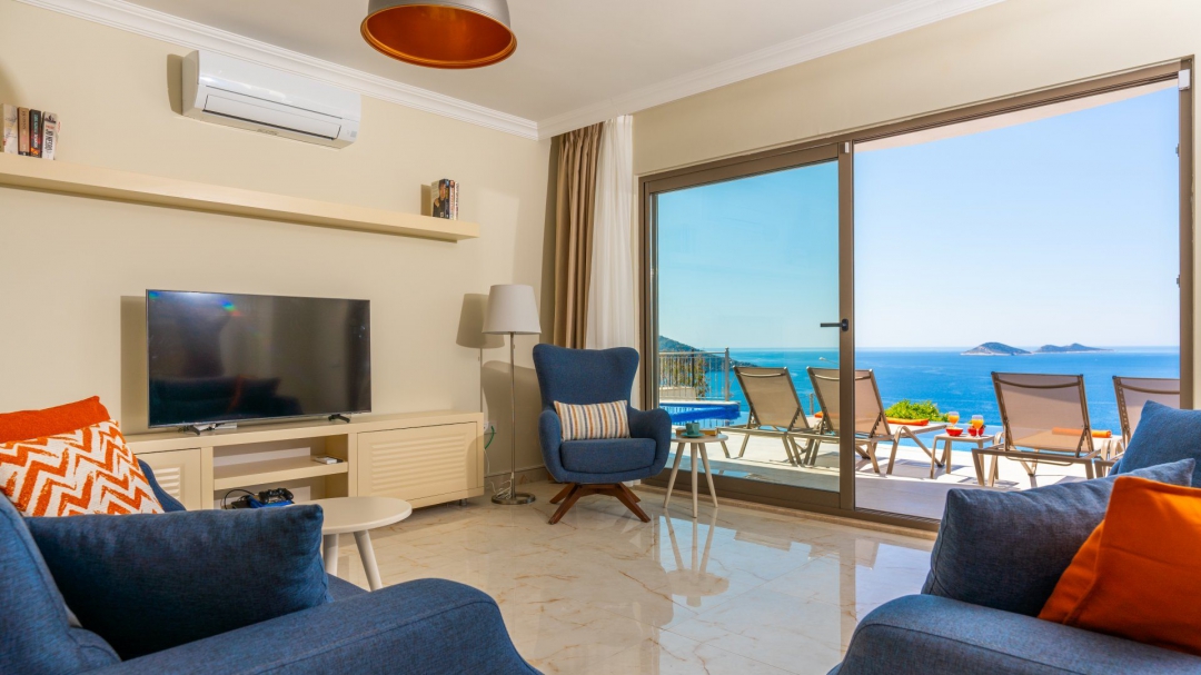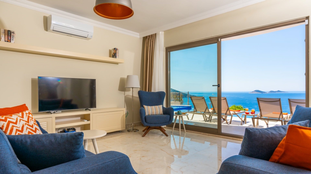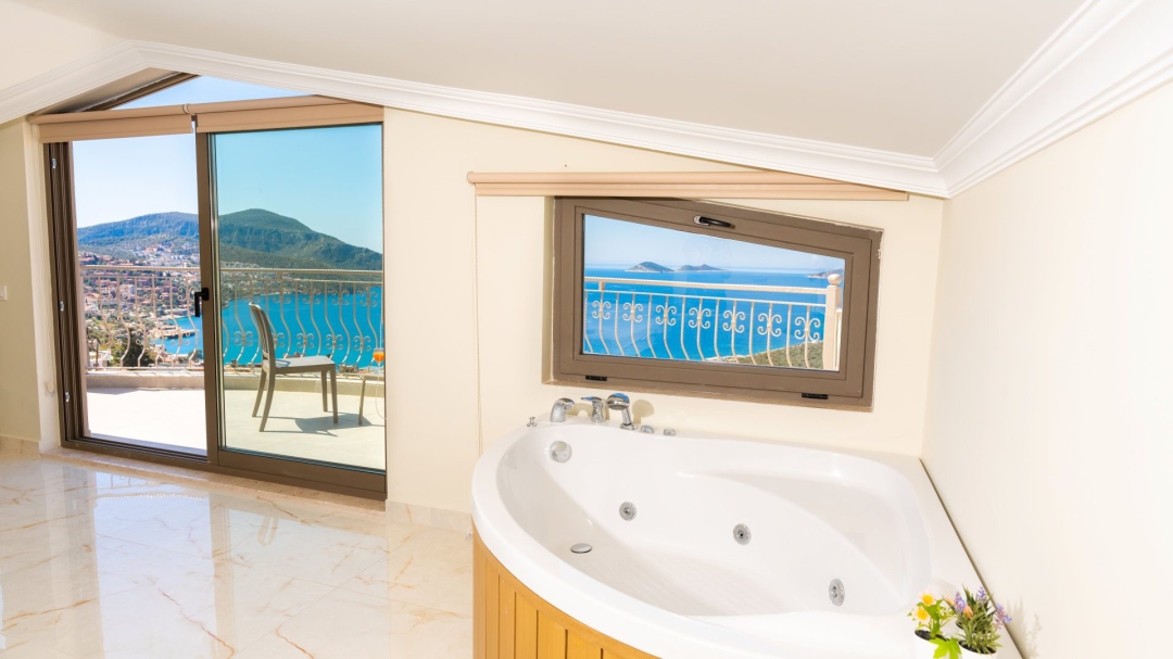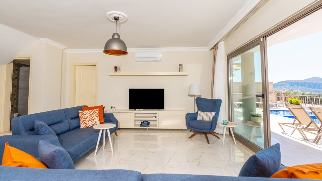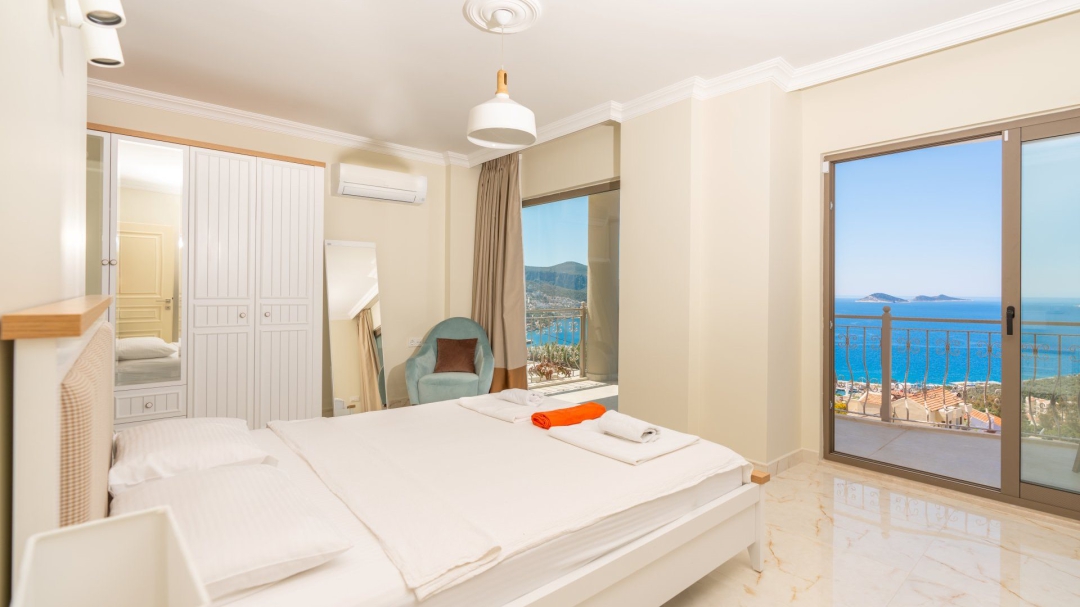 This villa, where the blue of the sea will adorn your eyes during your holiday, is located in Kızıltaş, close to the center of Kalkan. It is in a position to receive sunlight throughout the day. It has a large pool terrace and 4 bedrooms. There is a sea view from every part of the building.