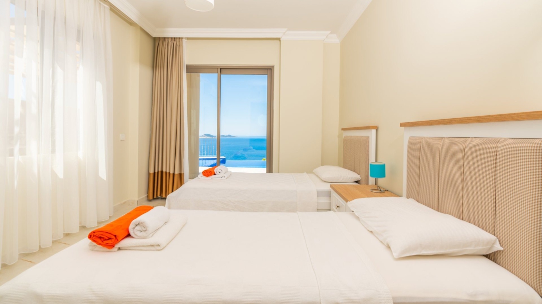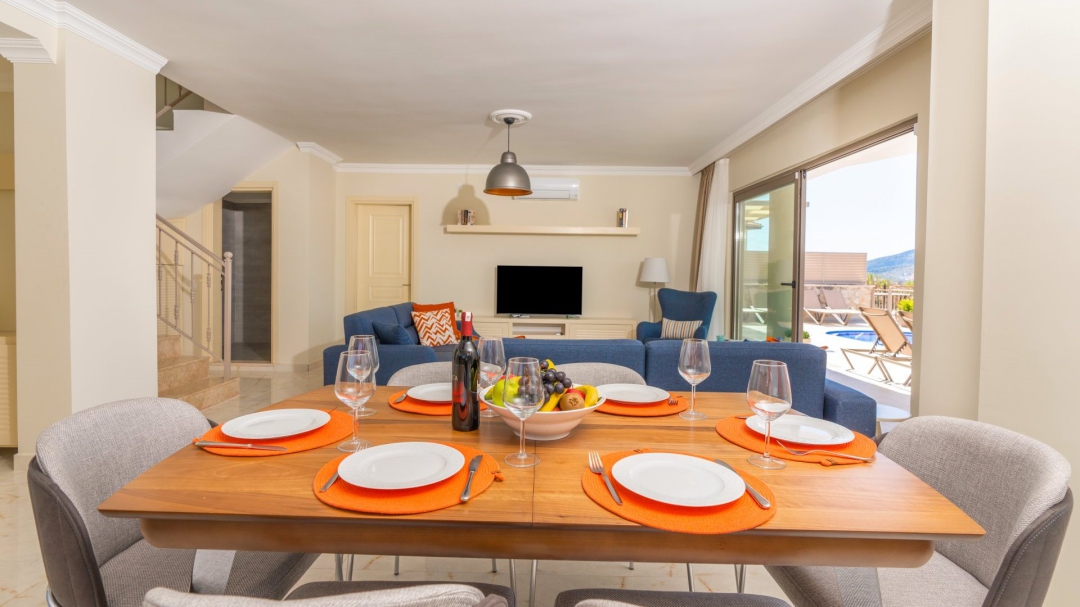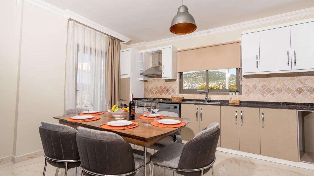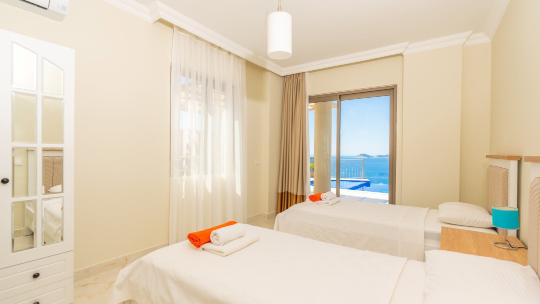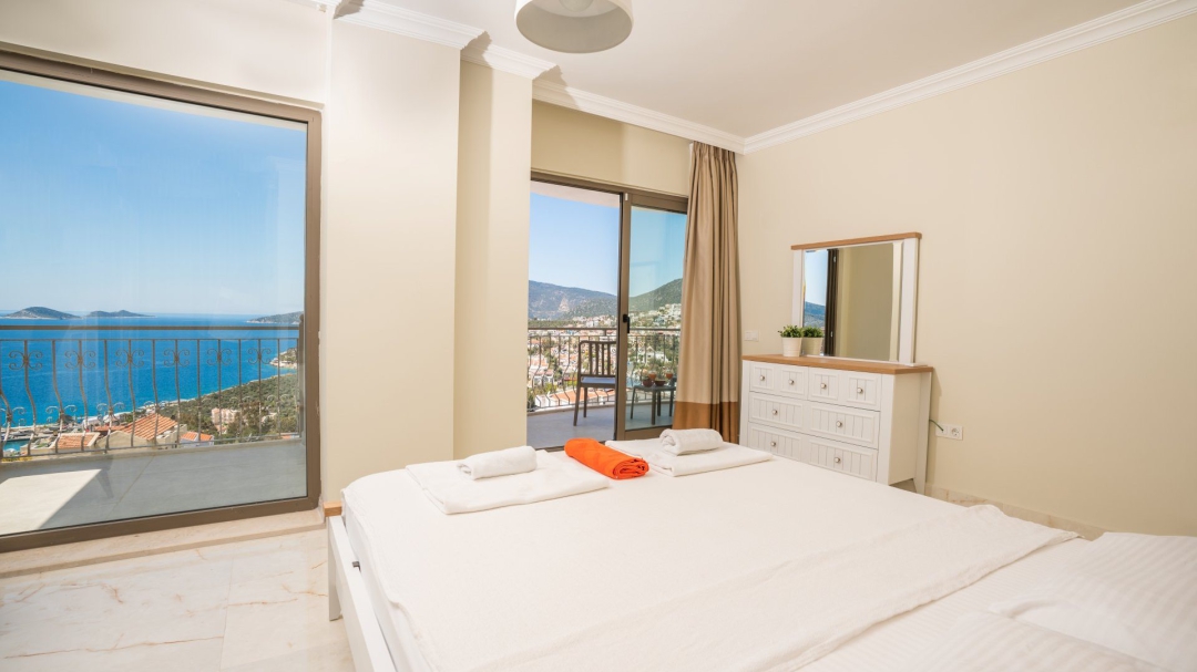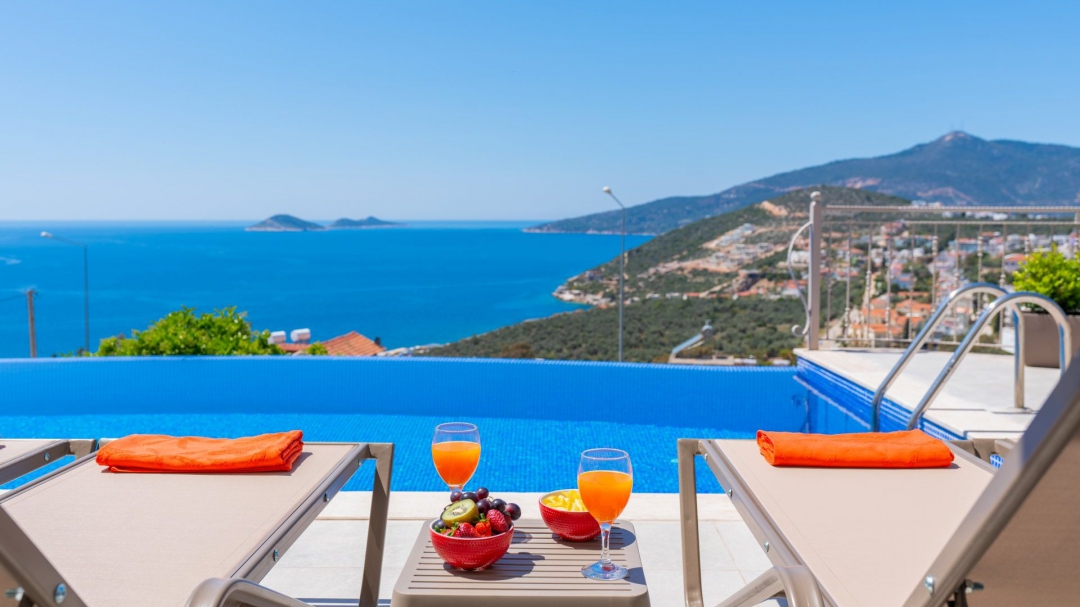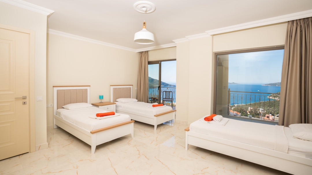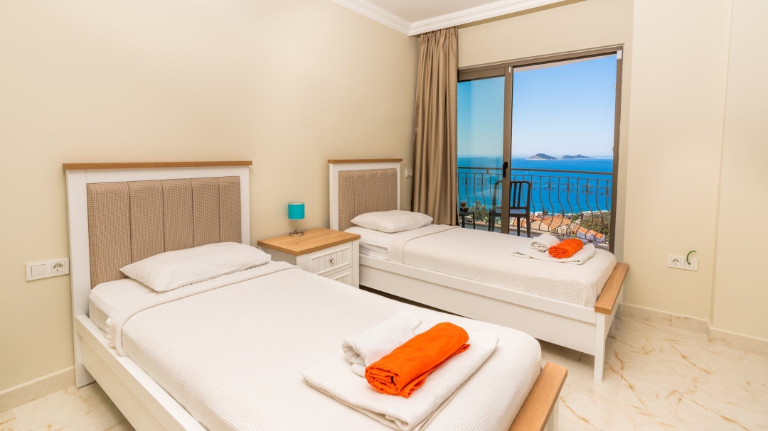 This villa, where the blue of the sea will adorn your eyes during your holiday, is located in Kızıltaş, close to the center of Kalkan. It is in a position to receive sunlight throughout the day. It has a large pool terrace and 4 bedrooms. There is a sea view from every part of the building.