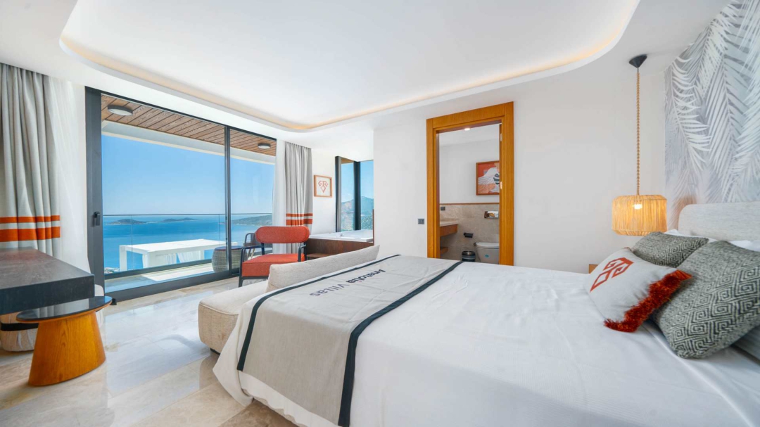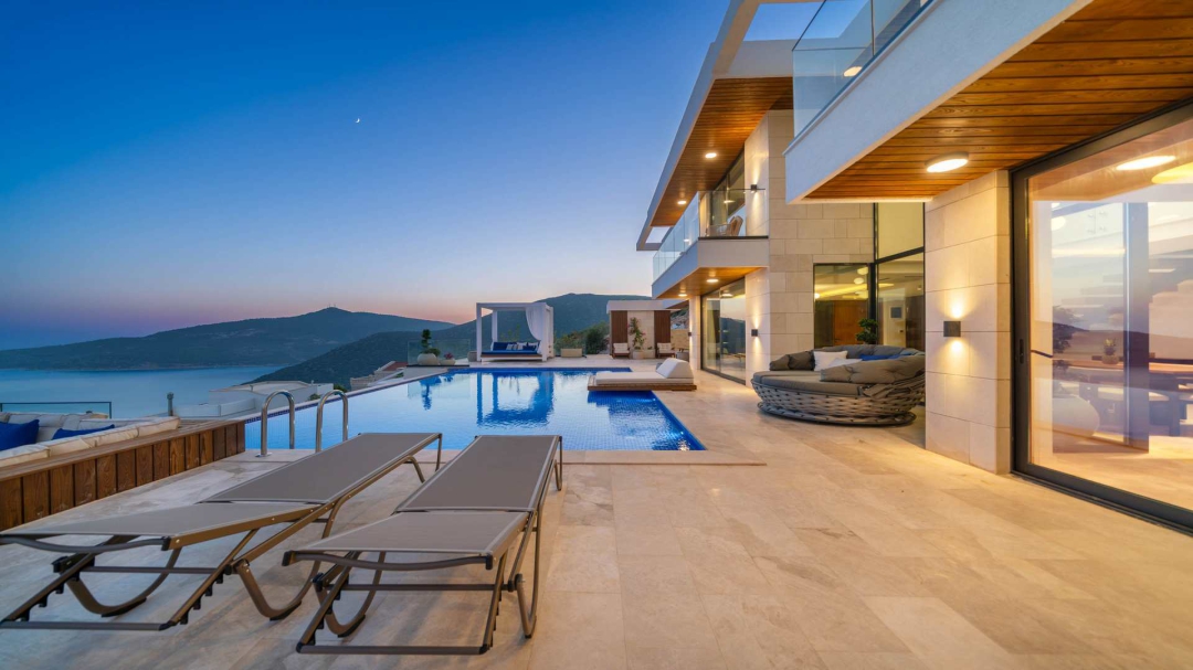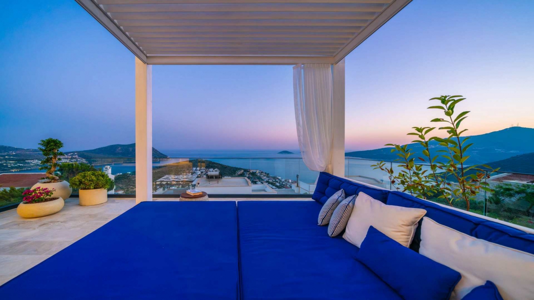 Kalkan is located at the highest point of Kalamar locality, dominating the breathtaking view of the dazzling Mediterranean, Kalkan and Kalamar bays. This unique location will enchant you every morning to start the day with a magnificent sunrise and in the evening to enjoy the setting sun with magnificent colors.