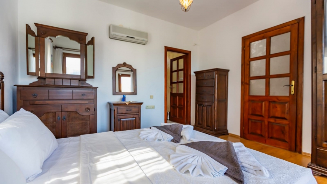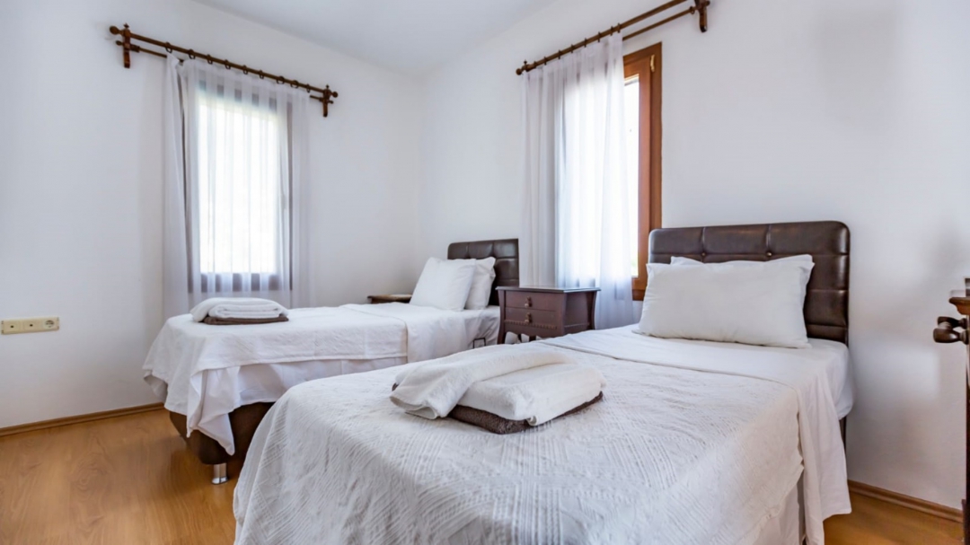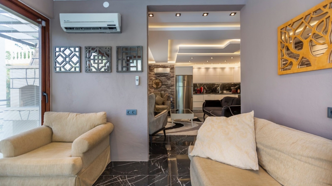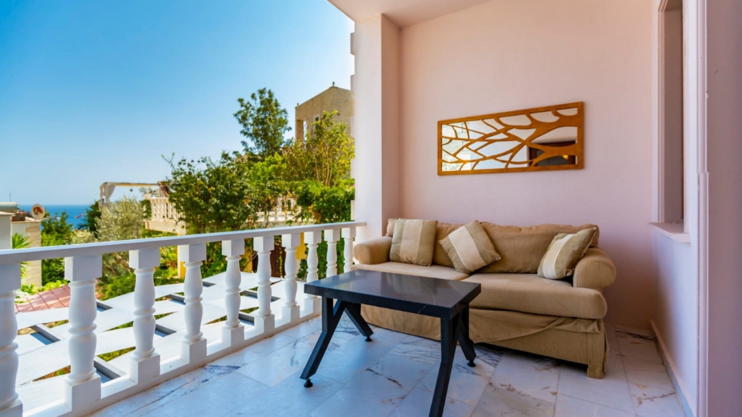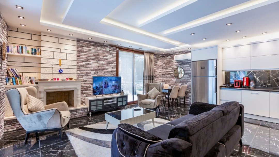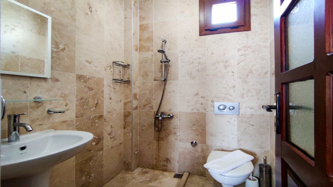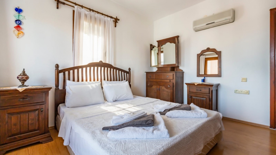 Located in a complex in Kalkan - Ortaalan, the villa for rent with private pool is an option with a capacity of four people. It is very easy to reach the center. On the ground floor of the two-storey building, there is a pool terrace, living room, kitchen and a very enjoyable reading section.
