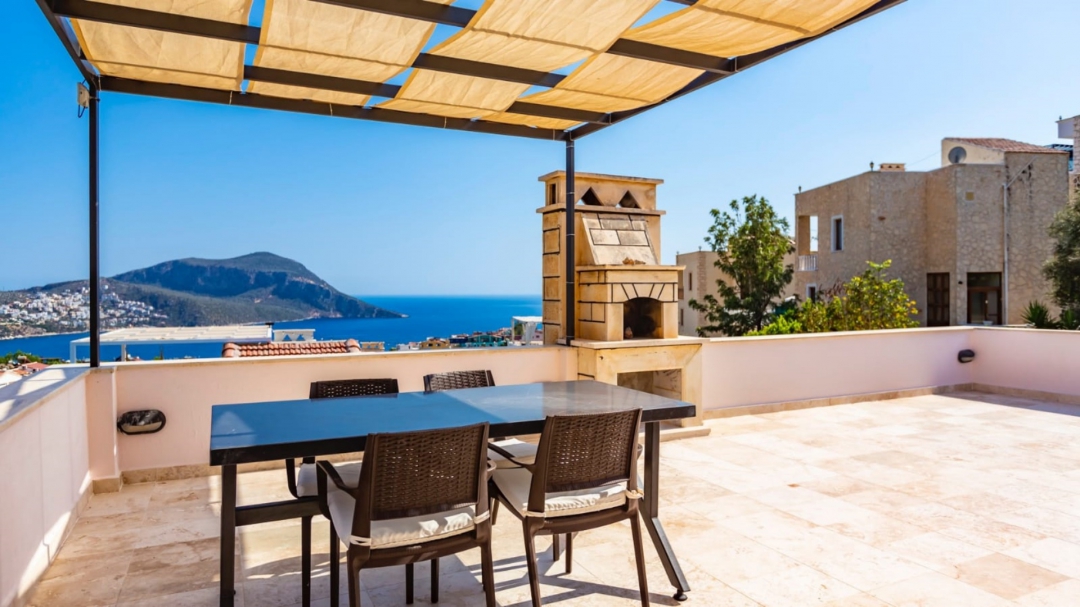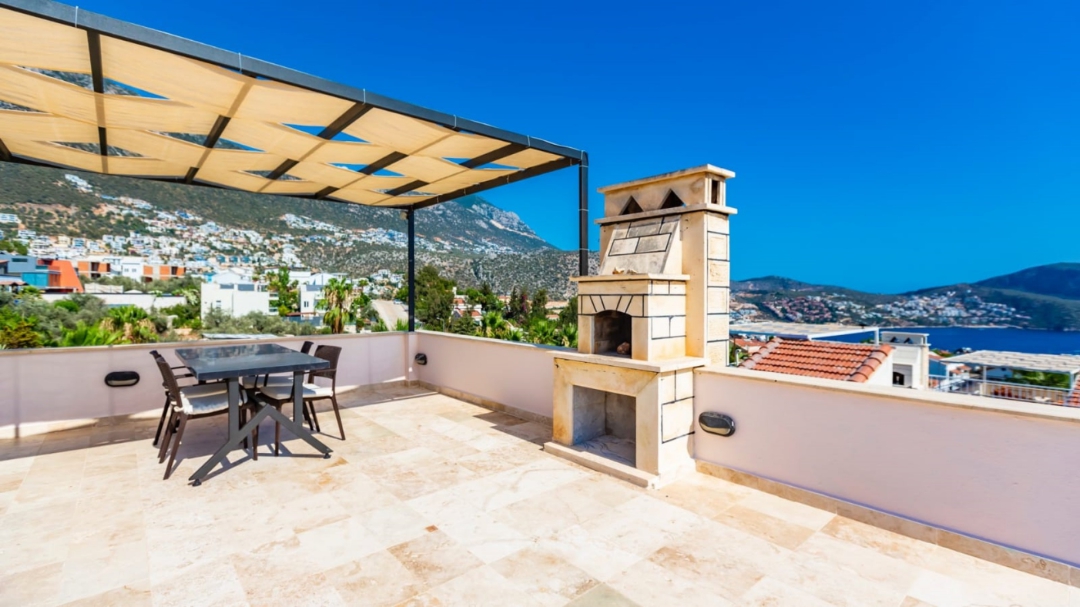 If you want to watch some Kalkan and sea views during afternoon tea, you can reach the rooftop by continuing to climb the stairs. In the attic, there is also a dining table for four and a camellia ready for you.