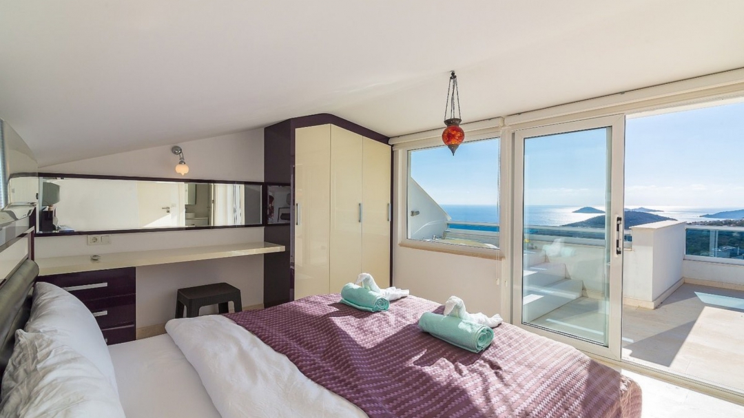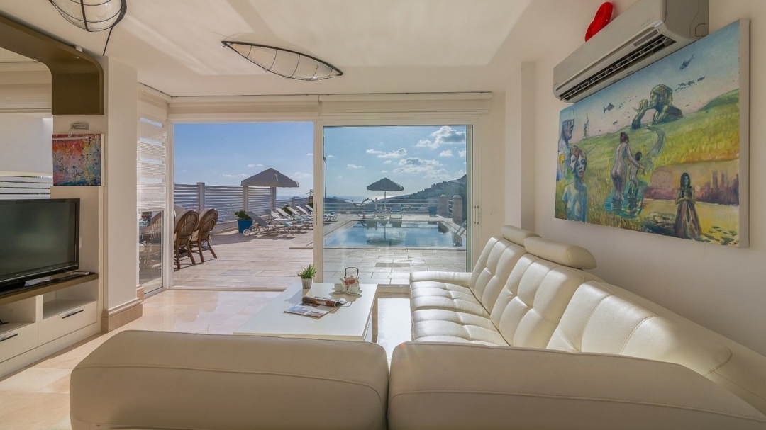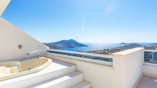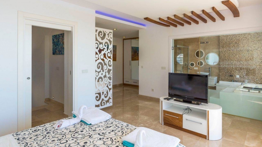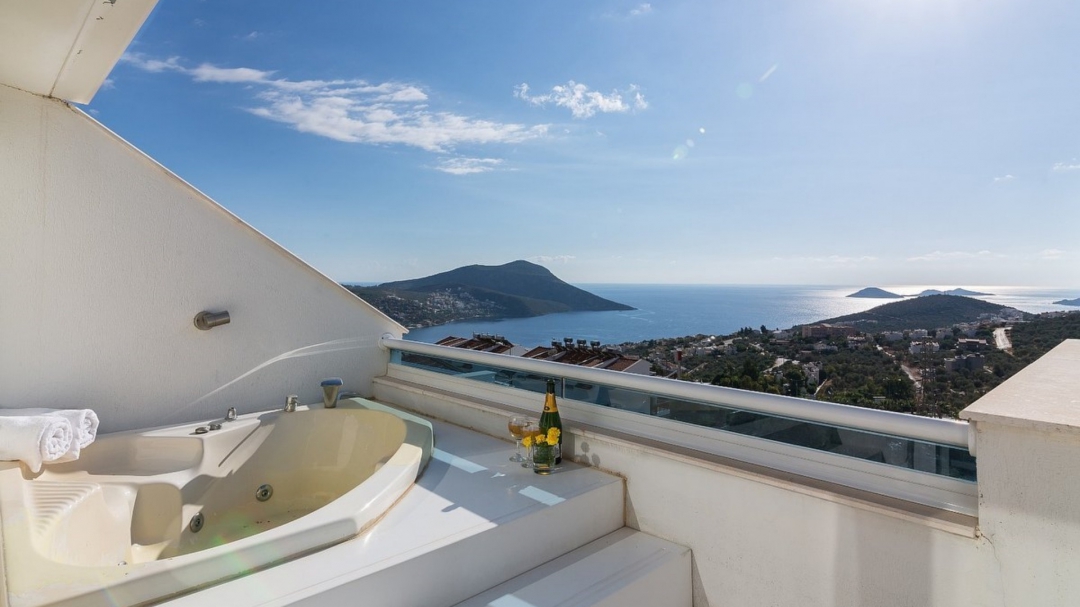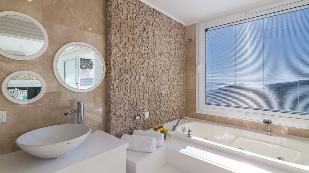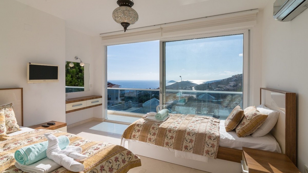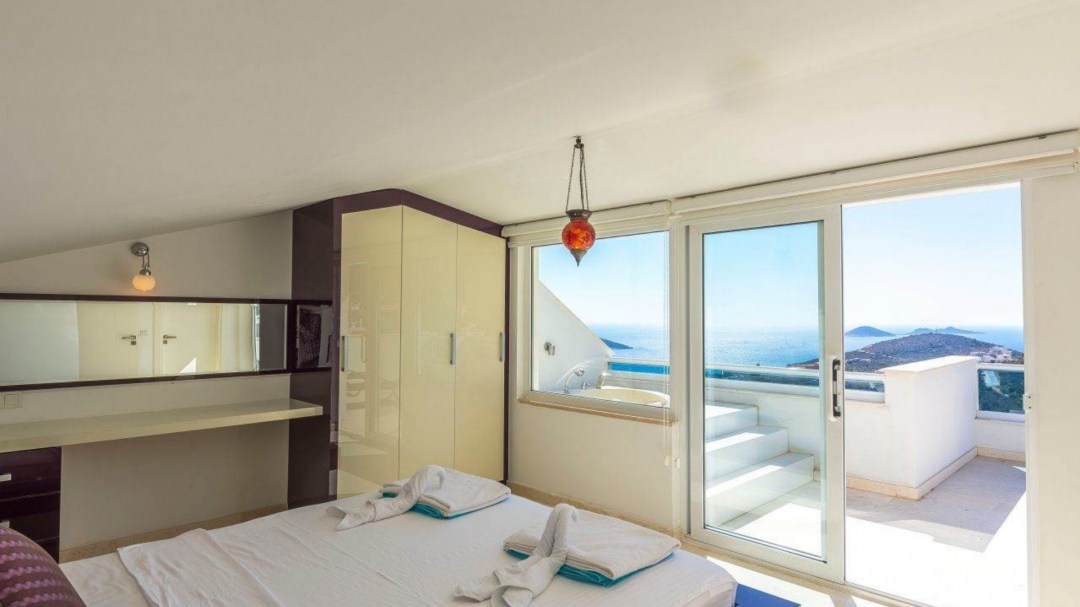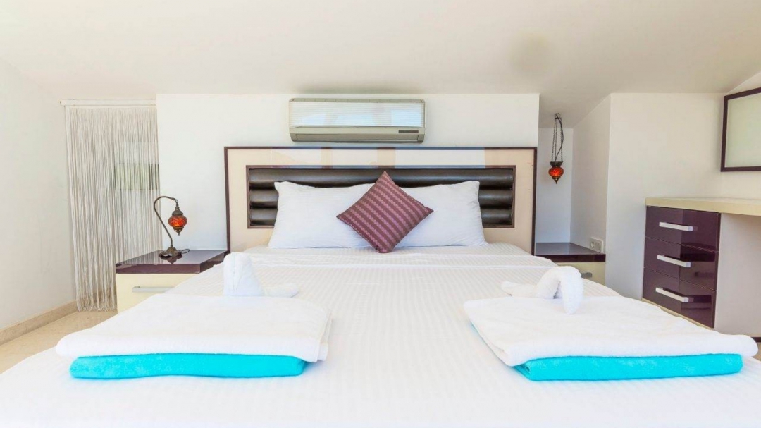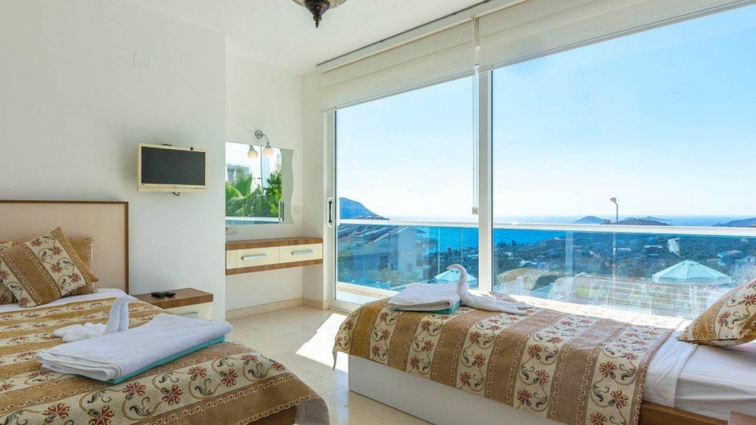 The sea view villa can accommodate 8 people. It has 4 bedrooms and each has 1 bathroom. Only 1 bedroom has a jacuzzi. It is very suitable for large families and groups of friends.