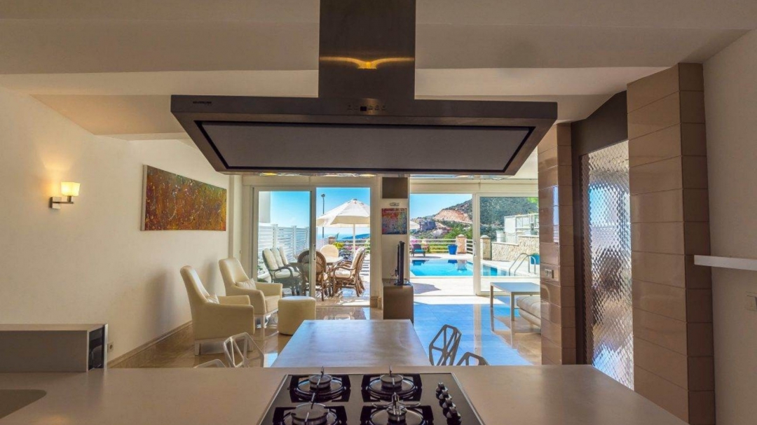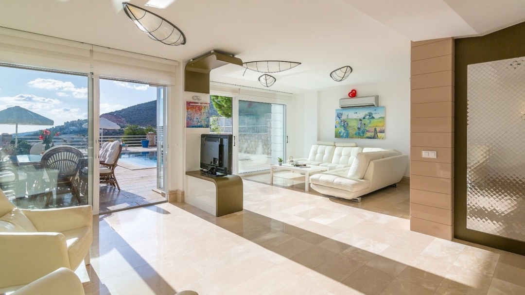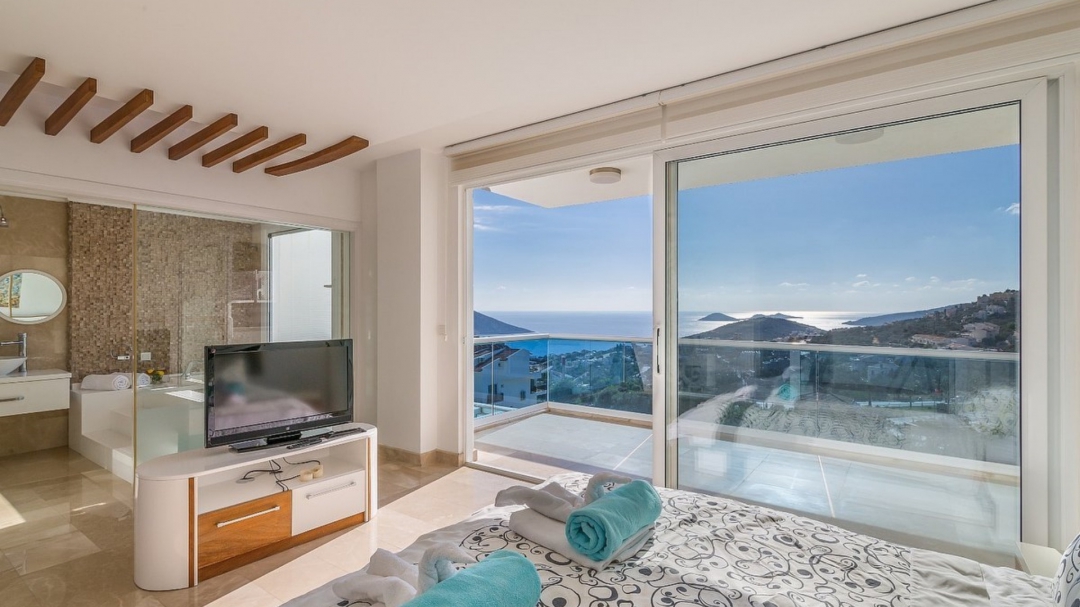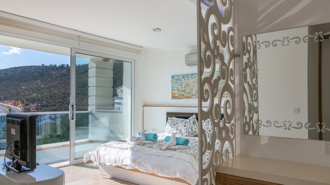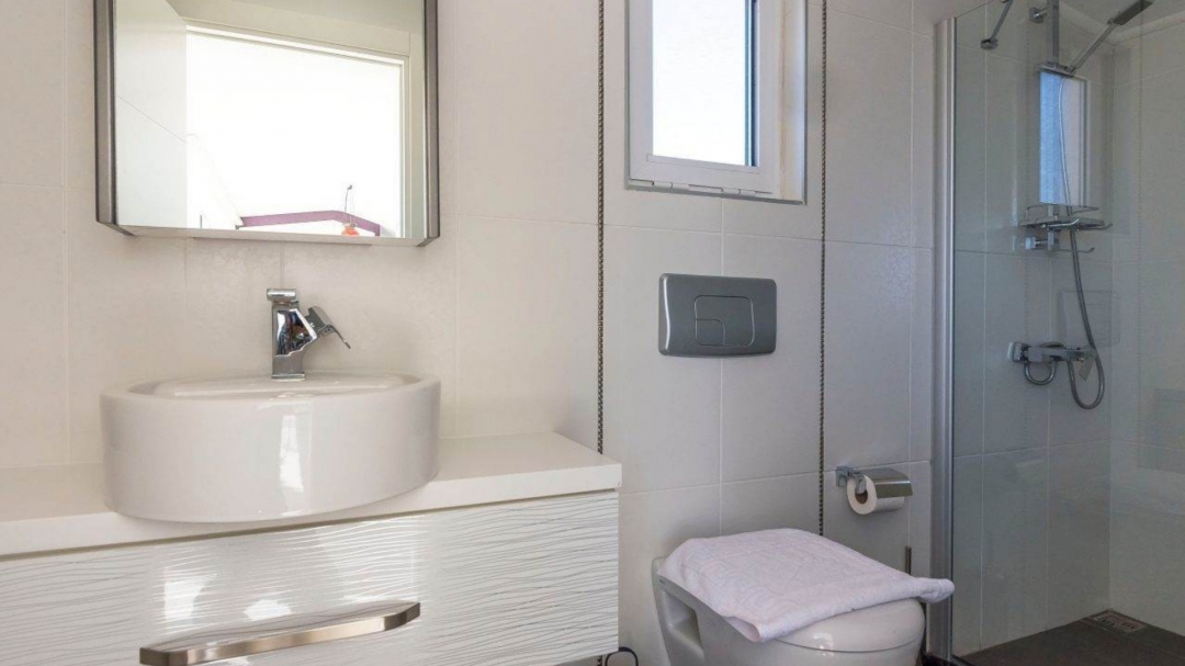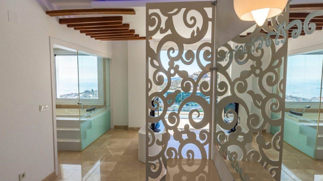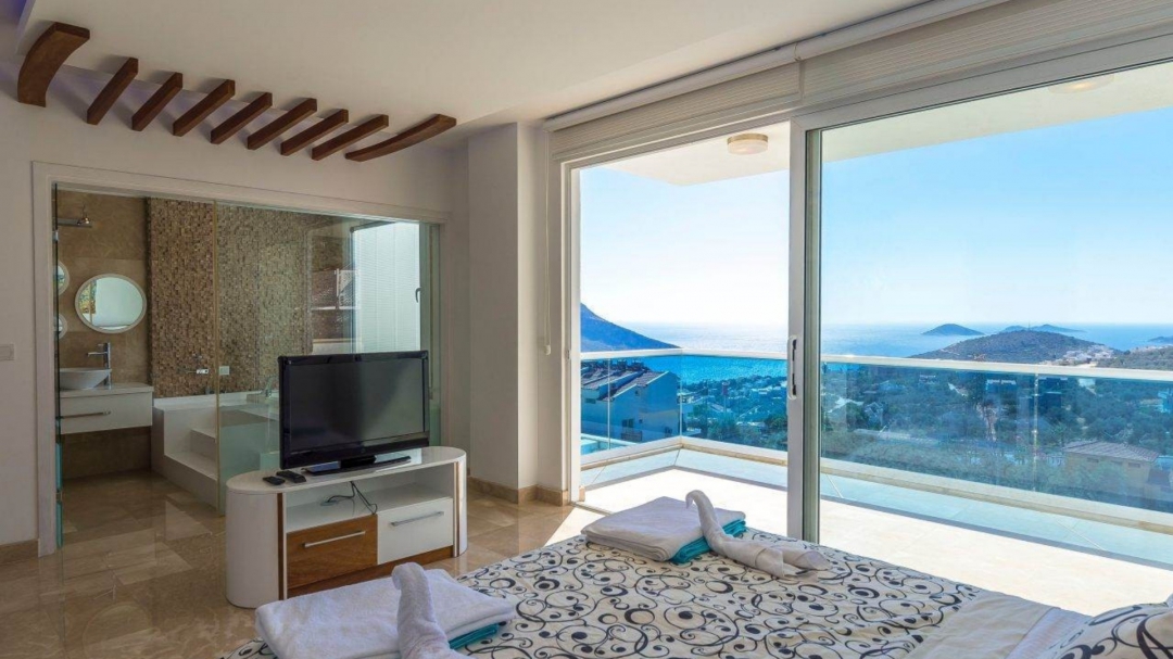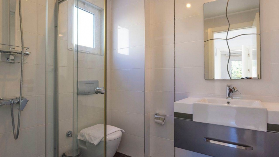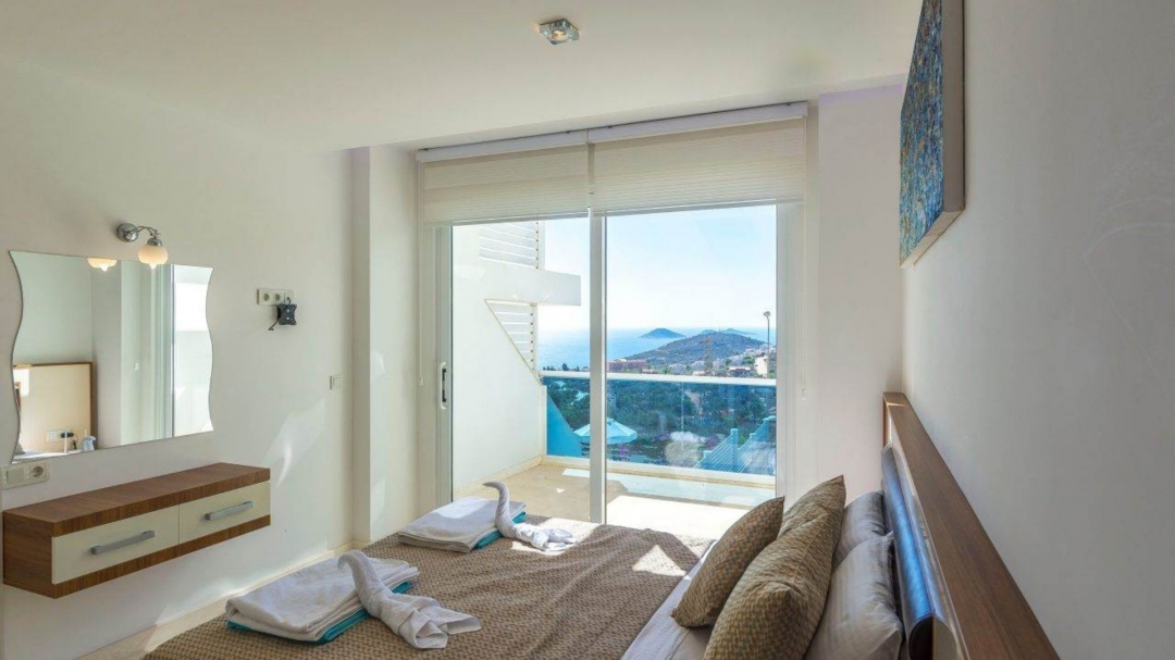 The sea view villa can accommodate 8 people. It has 4 bedrooms and each has 1 bathroom. Only 1 bedroom has a jacuzzi. It is very suitable for large families and groups of friends.