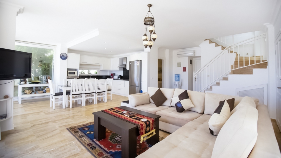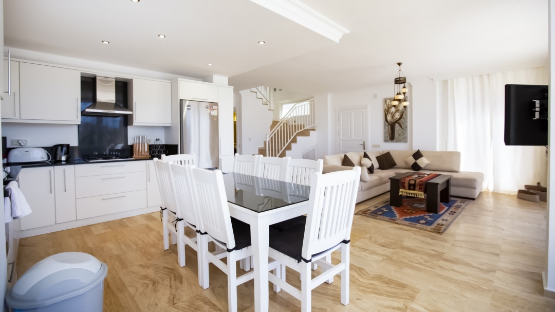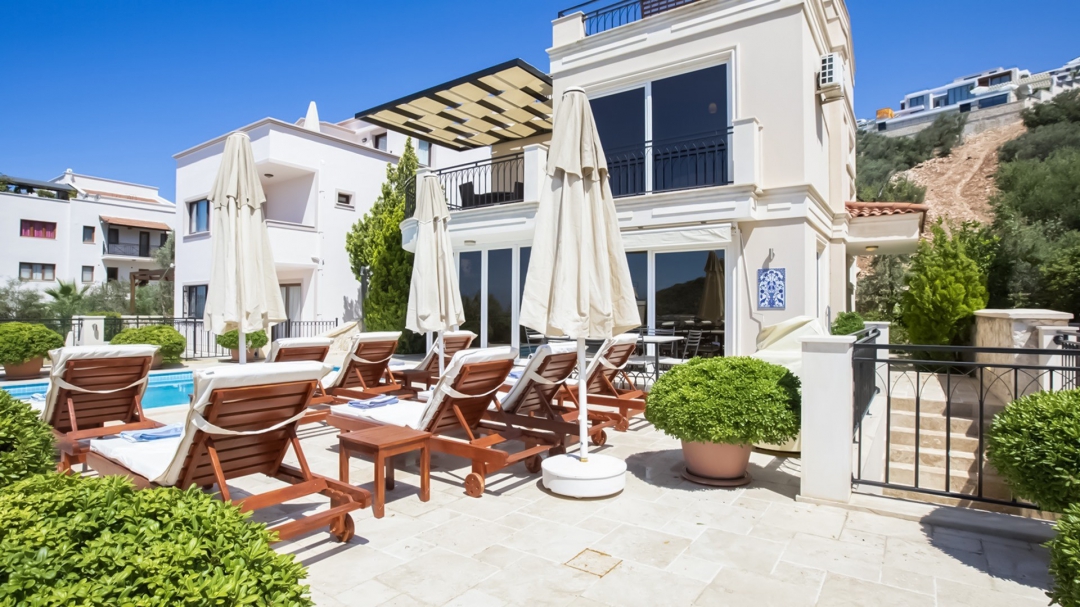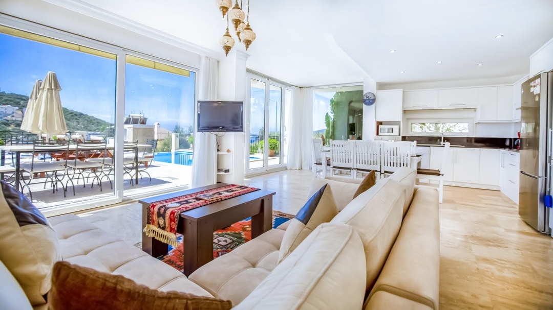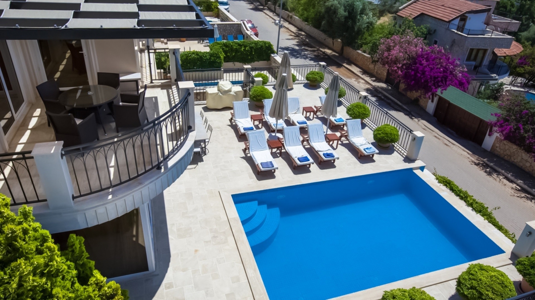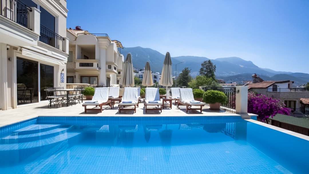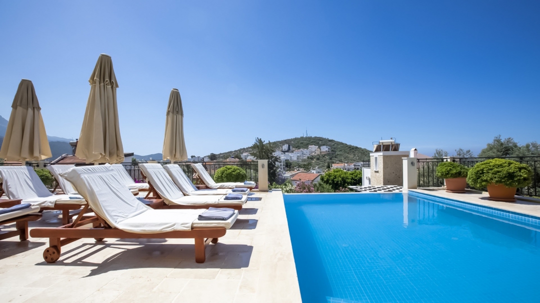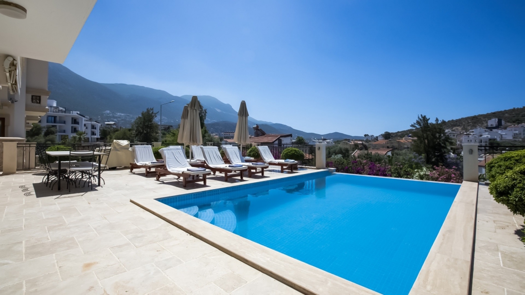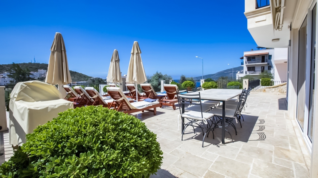 The villa can accommodate up to 10 guests and is conveniently situated only 15-20 minutes walk from the centre of Kalkan village. The walk to town is mainly on the flat and there are numerous restaurants, cafes and shops within a few minutes' walking distance if you don't wish to venture into town (a Carrefour supermarket is very close by). The popular Kalamar Beach Club is a 10 minute walk in the opposite direction.