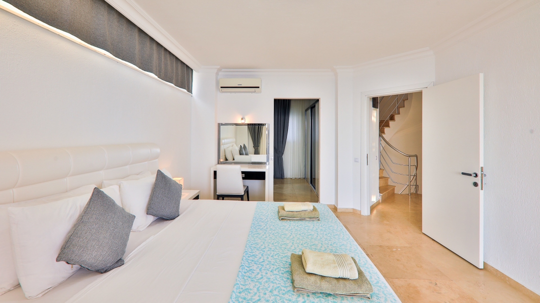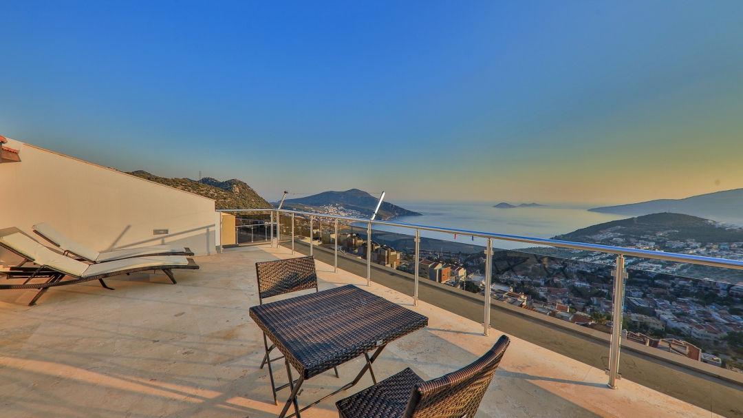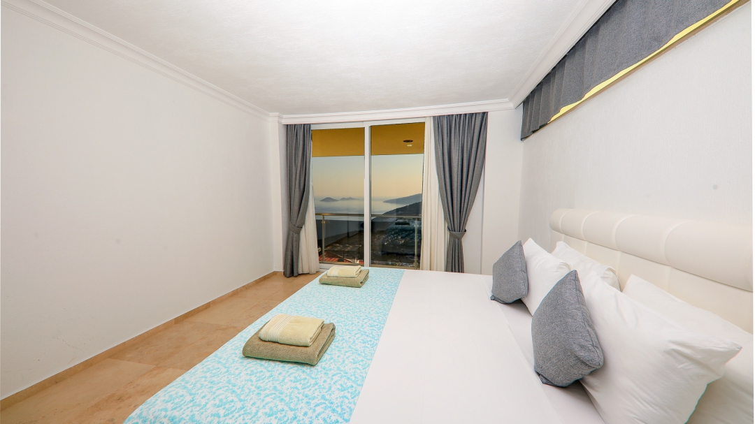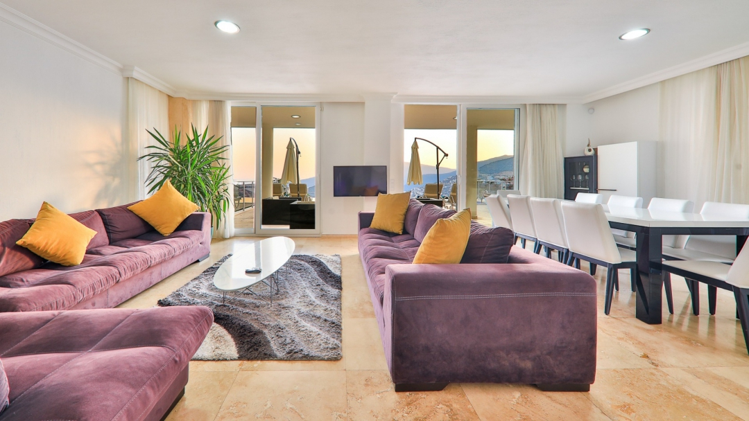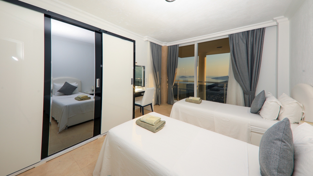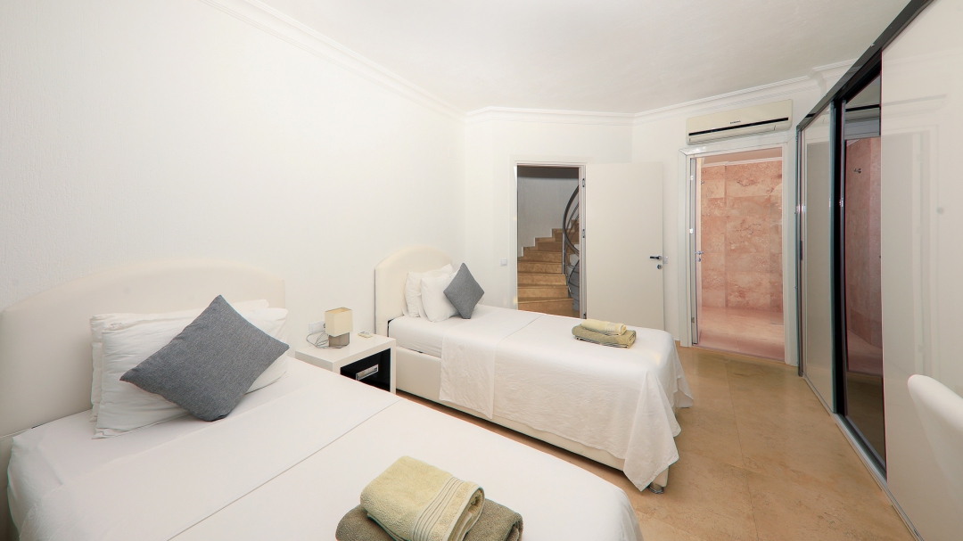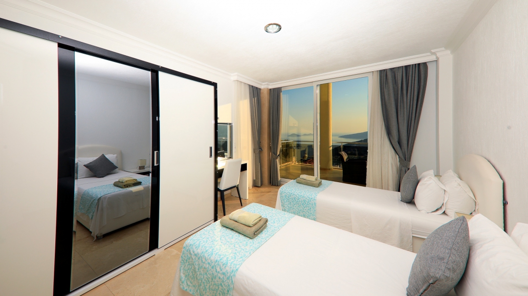Consisting of four floors, the villa is an option with sea views. It has 5 bedrooms. When rented together with the villa with the code ABI6230, it provides a capacity of 20 people. It is located in the Kızıltaş area of Kalkan. Access to the center is easy. In the section under the pool floor, there are equipment such as treadmill, table tennis and billiards. On the ground floor, there is the pool terrace, the living room and the kitchen. Rooms are located on the upper floors.