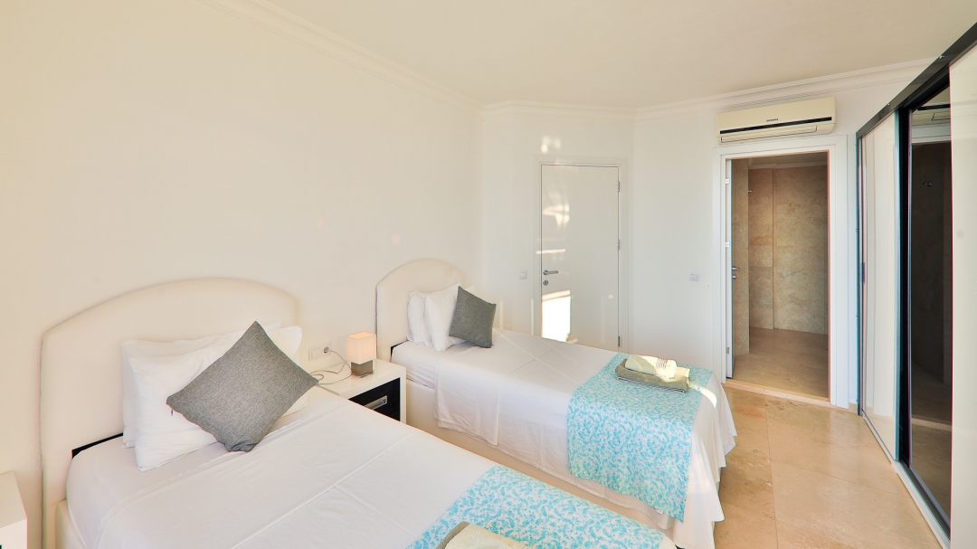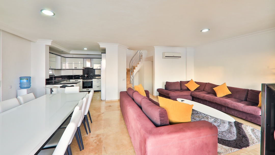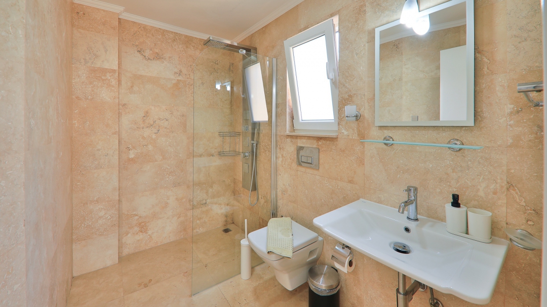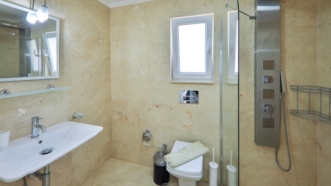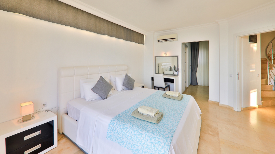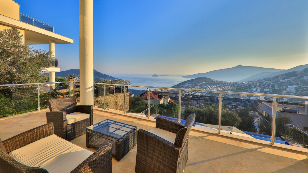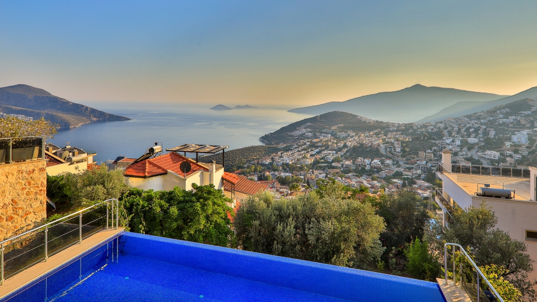 Consisting of four floors, the villa is an option with sea views. It has 5 bedrooms. When rented together with the villa with the code ABI6230, it provides a capacity of 20 people. It is located in the Kızıltaş area of Kalkan. Access to the center is easy. In the section under the pool floor, there are equipment such as treadmill, table tennis and billiards. On the ground floor, there is the pool terrace, the living room and the kitchen. Rooms are located on the upper floors.