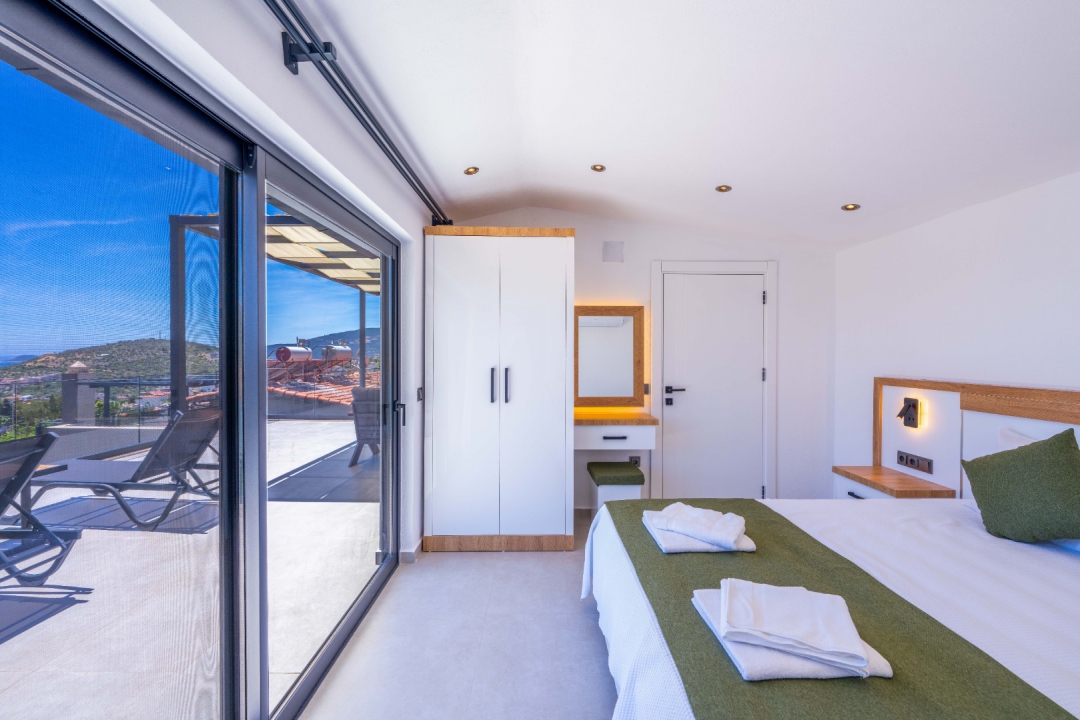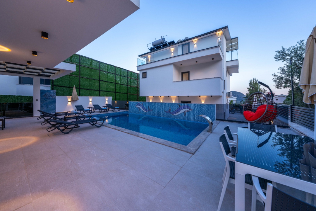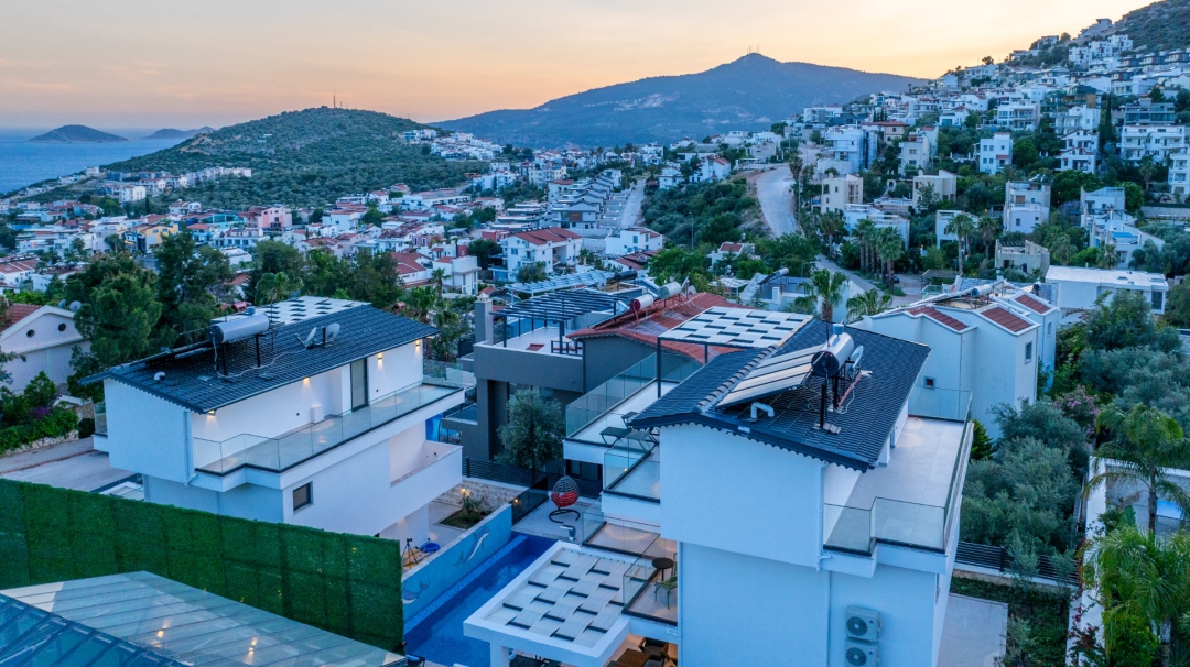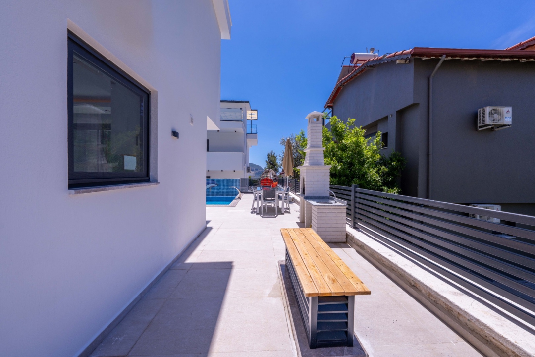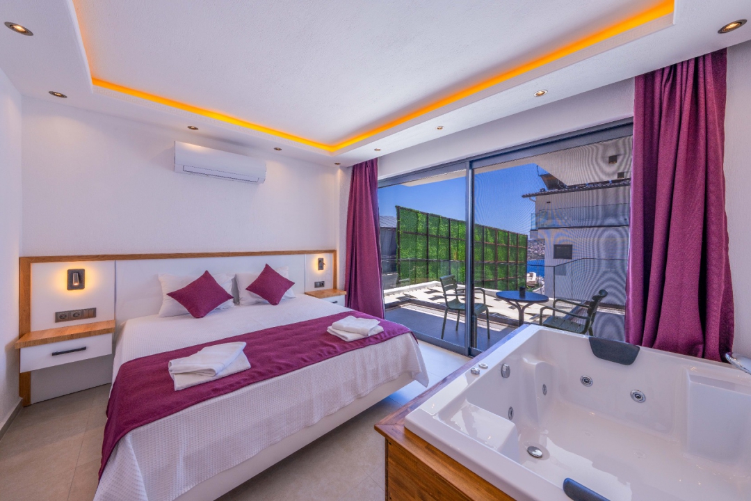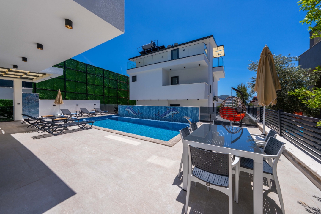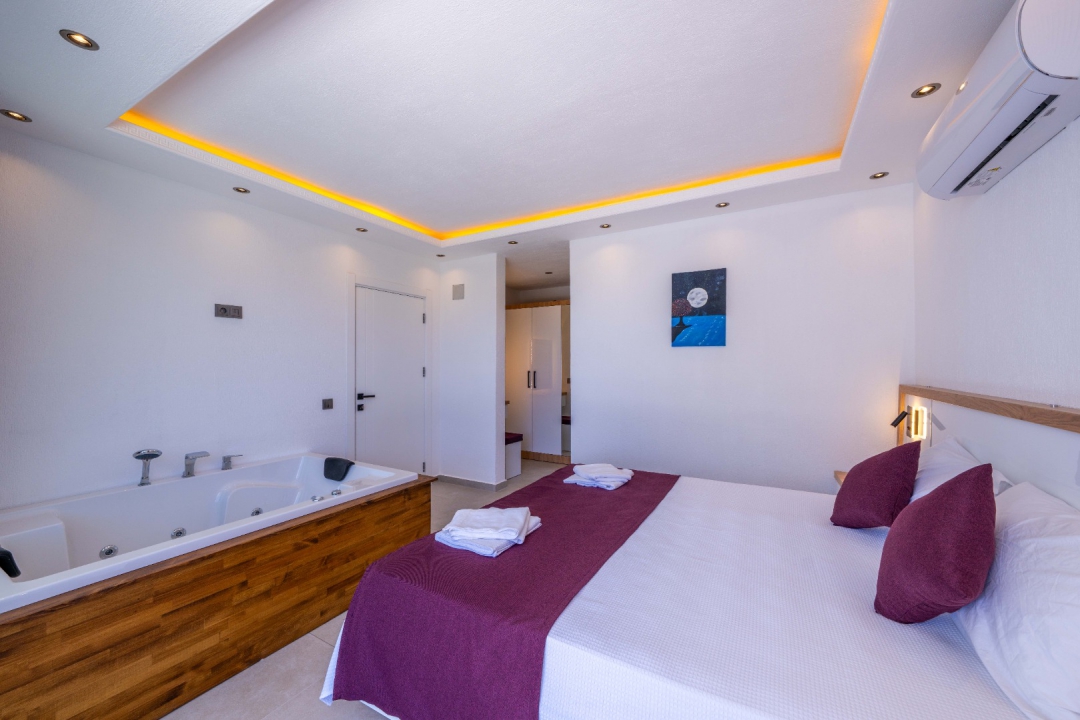 Located in the Ortaalan area of ​​Kalkan, this three-bedroom holiday villa offers accommodation for up to six people. Overlooking Kalkan and the sea, the villa boasts comfortable interior and exterior design to ensure a relaxing holiday. The master bedroom features a jacuzzi and a private bathroom, providing an unparalleled vacation experience.